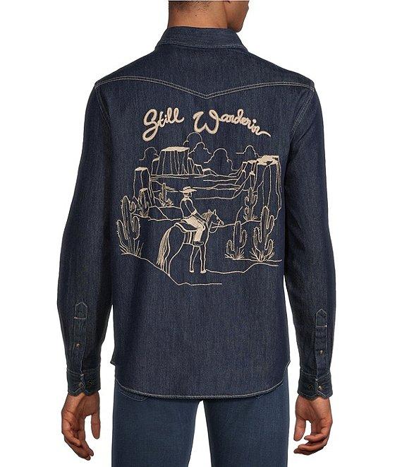 Murano Big & Tall Still Wanderin' Collection Slim Fit Embroidered Denim Long Sleeve Woven Shirt
