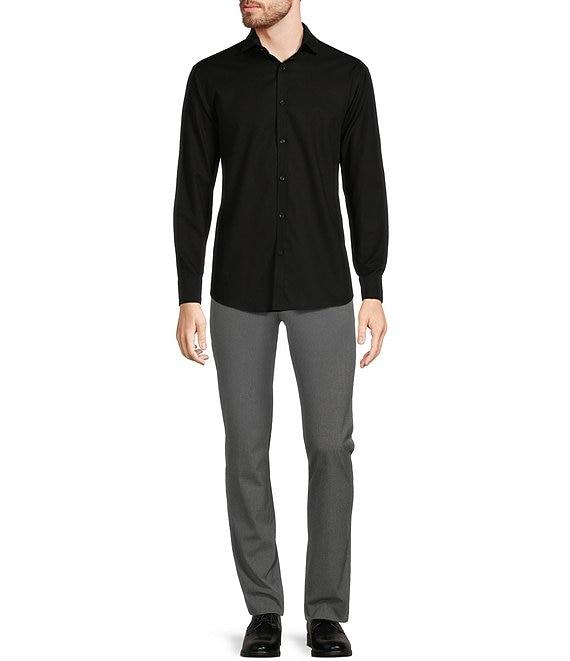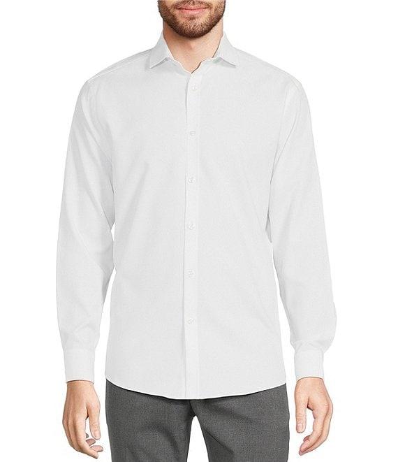 From Murano, this shirt features: Solid tone with dobby fabric Innovative stretch fiber that is woven invisibly into the fabric Classic fit Spread collar Long sleeves Button front closure Curved hem Cotton/spandex Machine wash/tumble dry Imported.