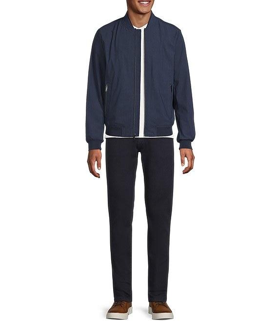 From Murano, this bomber jacket features: Micro houndstooth-patterned fabric Full-zipper 2-way zipper Ribbed knit sleeve cuffs and hem Double front hip pockets with zip closure Interior drop-in pocket with snap closure Stretch fabric Wrinkle recovery for easy travel Made with Italian fabric Machine wash cold/tumble dry Imported.