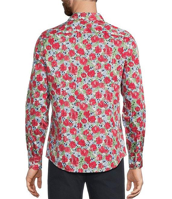 Murano Corsa Di Cavalli Derby Collection Slim Fit Rose Print Long Sleeve Woven Shirt