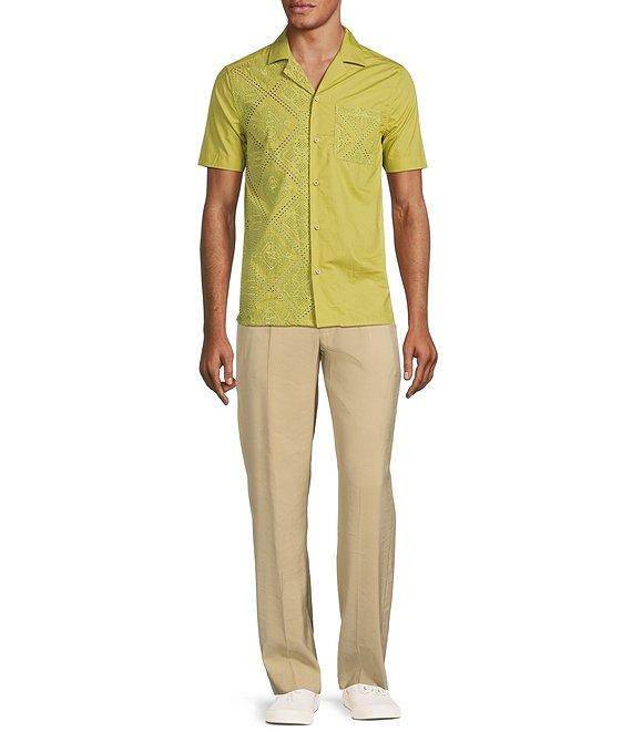 Murano Crocodile World Collection Slim Fit Contrast Eyelet Short Sleeve Woven Camp Shirt