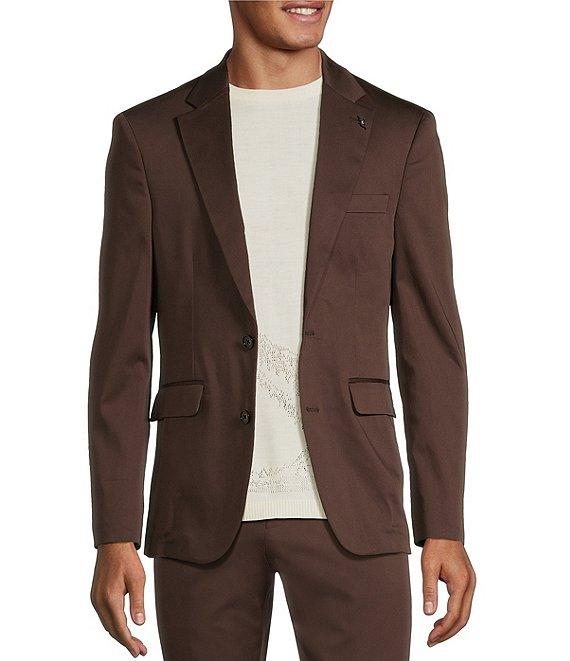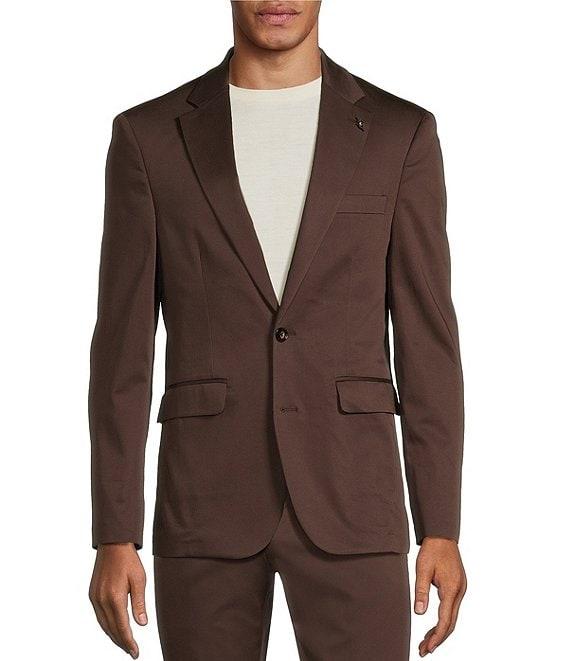 From Murano Crocodile World Collection, this blazer features: Slim fit Solid tone Notch lapel Long sleeves 2-button closure Left side chest pocket Lower welt pockets Sateen fabric Cotton/spandex blend Dry clean Bandana gift with purchase Imported.