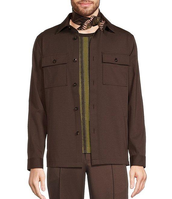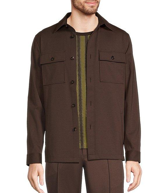 From Murano Crocodile World Collection, this shirt jacket features:Solid toneSlim fit Point collarLong sleeves2 front chest pockets2 side pocketsButton-front closureCotton/nylon/spandex blendMachine wash/tumble dryBandana gift with purchaseImported.