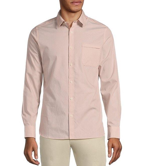 From Murano, this shirt features: Solid tone with pieced detail Slim fit Point collar Long sleeves Full button-front closure Cotton blend Machine wash/tumble dry low Imported.