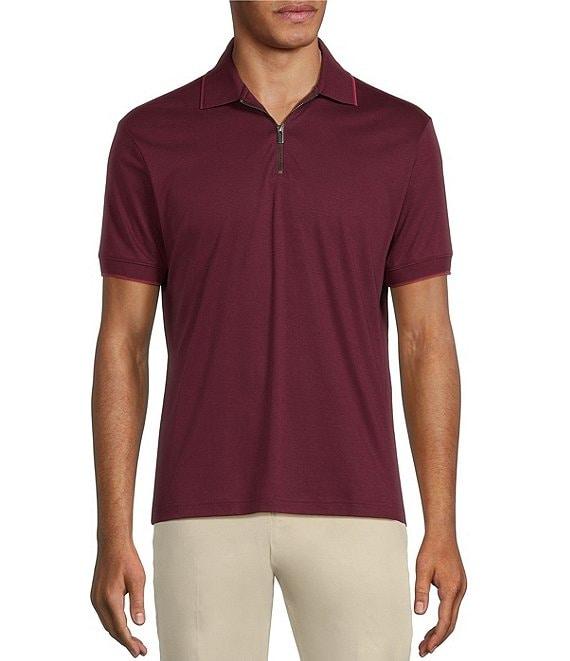Murano Liquid Luxury Slim Fit Solid Interlock Short Sleeve Quarter-Zip Polo Shirt