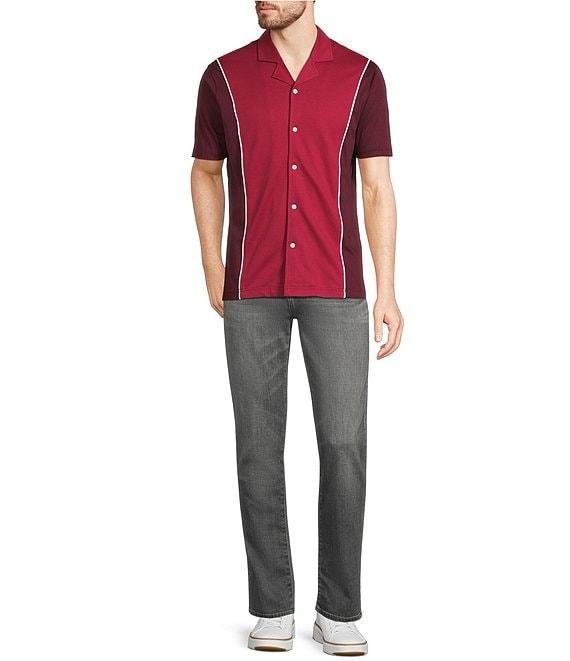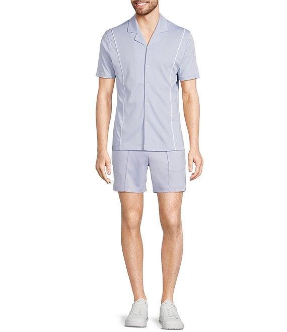 Murano Liquid Luxury Slim Fit Textured Coatfront Short Sleeve Woven Camp Shirt