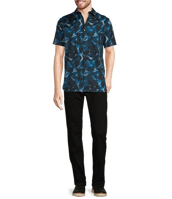 Murano Shape of Water Collection Slim Fit Sheer Water Print Short Sleeve Woven Camp Shirt