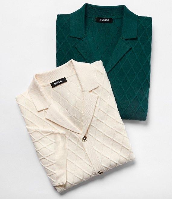 Murano Shape of Water Collection Textured Short Sleeve Camp Sweater