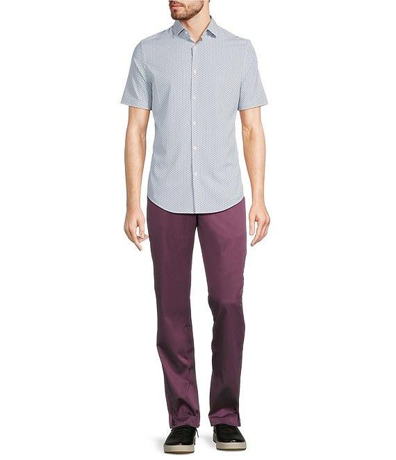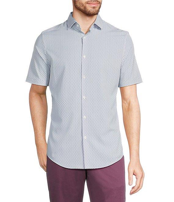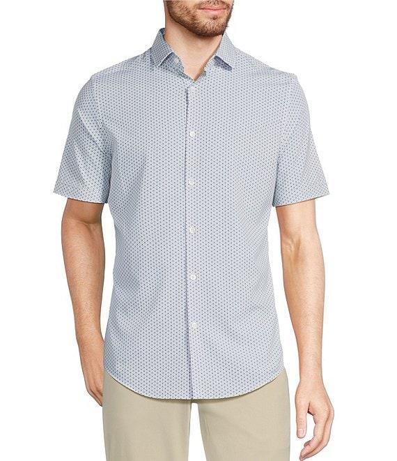 Murano Slim Fit Performance Stretch Geometric Print Short Sleeve Woven Shirt