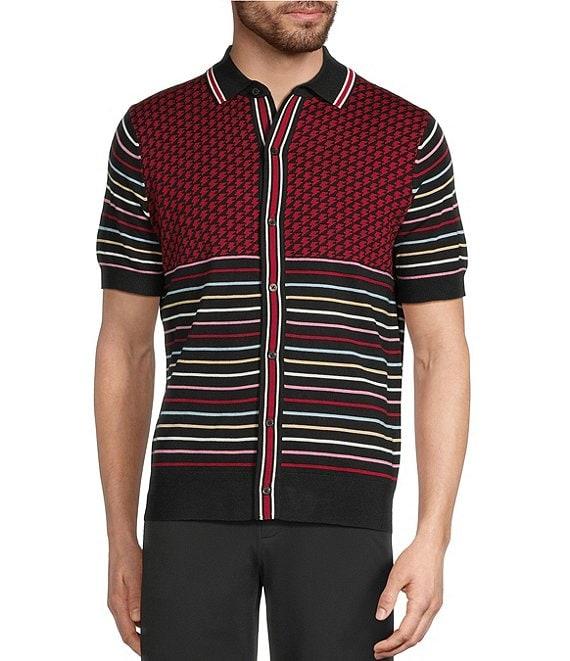 From Murano, this shirt features: Classic fit Spread collar Short sleeves Button-front closure Jacquard fabrication Acrylic Machine wash/tumble dry Imported.