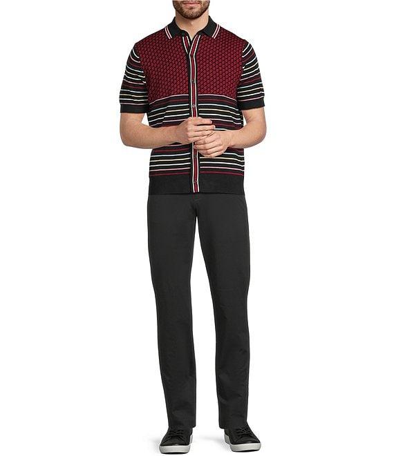 Murano The Murano Show Collection Short Sleeve Jacquard Striped Coat Front Shirt