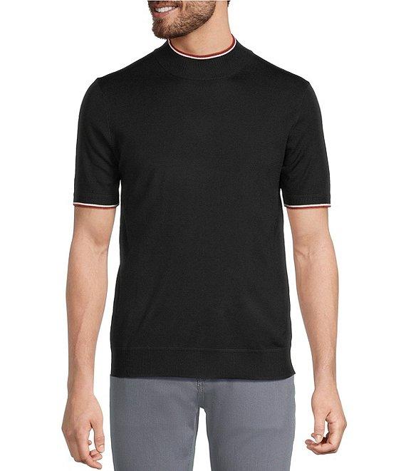 From Murano, this shirt features: Solid tone Mock neck Short sleeves Pullover construction Acrylic Machine wash/tumble dry Imported.