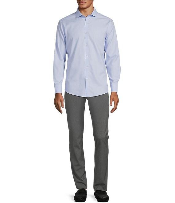 From Murano, this shirt features: Solid tone with dobby fabric Innovative stretch fiber that is woven invisibly into the fabric Classic fit Spread collar Long sleeves Button front closure Curved hem Cotton/spandex Machine wash/tumble dry Imported.