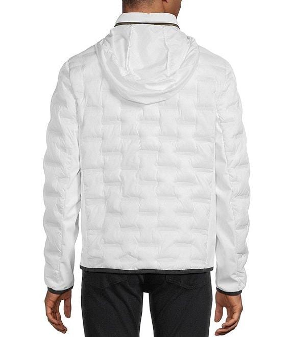From Murano, this jacket features: Solid puffer Stand collar Long sleeves Full-zip front Front pockets with contrasting zip closure Secure interior pocket Wind and water-resistant Stretch side panels Polyester Machine wash cold/tumble dry Imported.