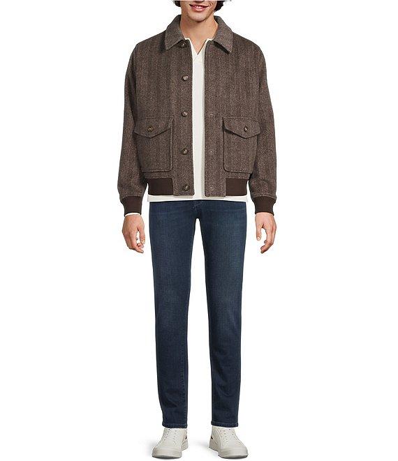From Murano, this bomber features: Collared neckline Long sleeves Button-front closure Ribbed knit hem and sleeve cuffs Front hip drop-in patch pockets with button flap closure and additional slide-in pockets with snap closure 2 interior chest pockets Wool Dry clean Imported.