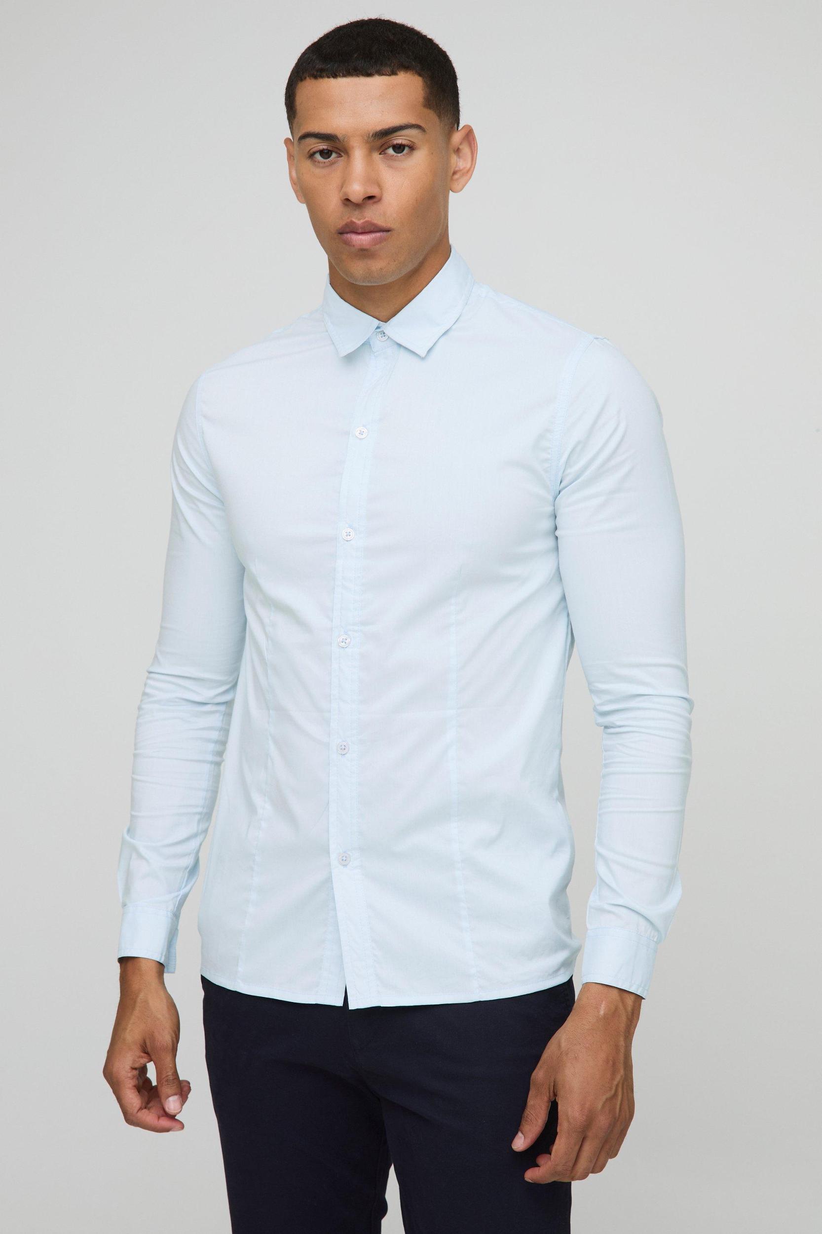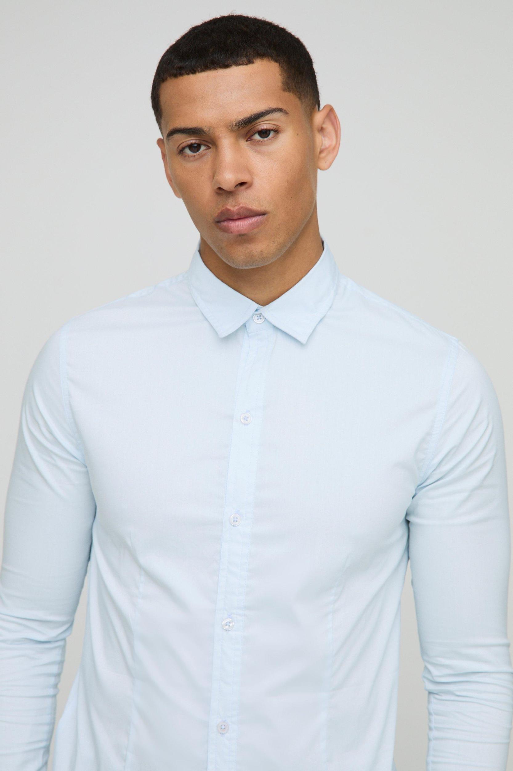 Muscle Fit Basic Long Sleeve Collared Shirt | boohooMAN USA