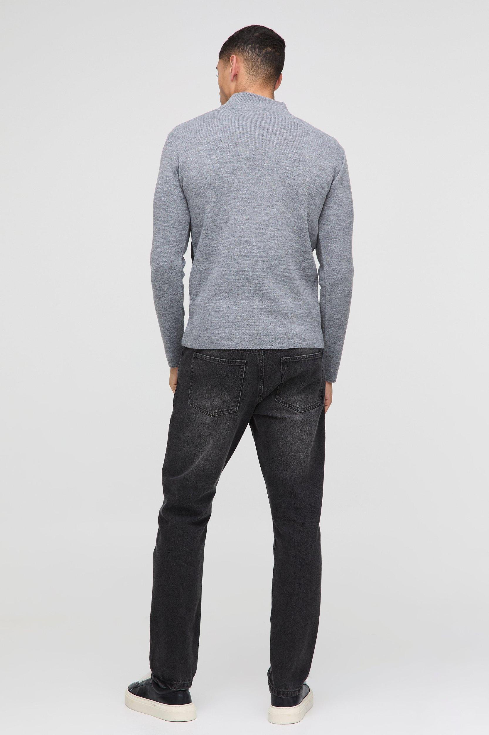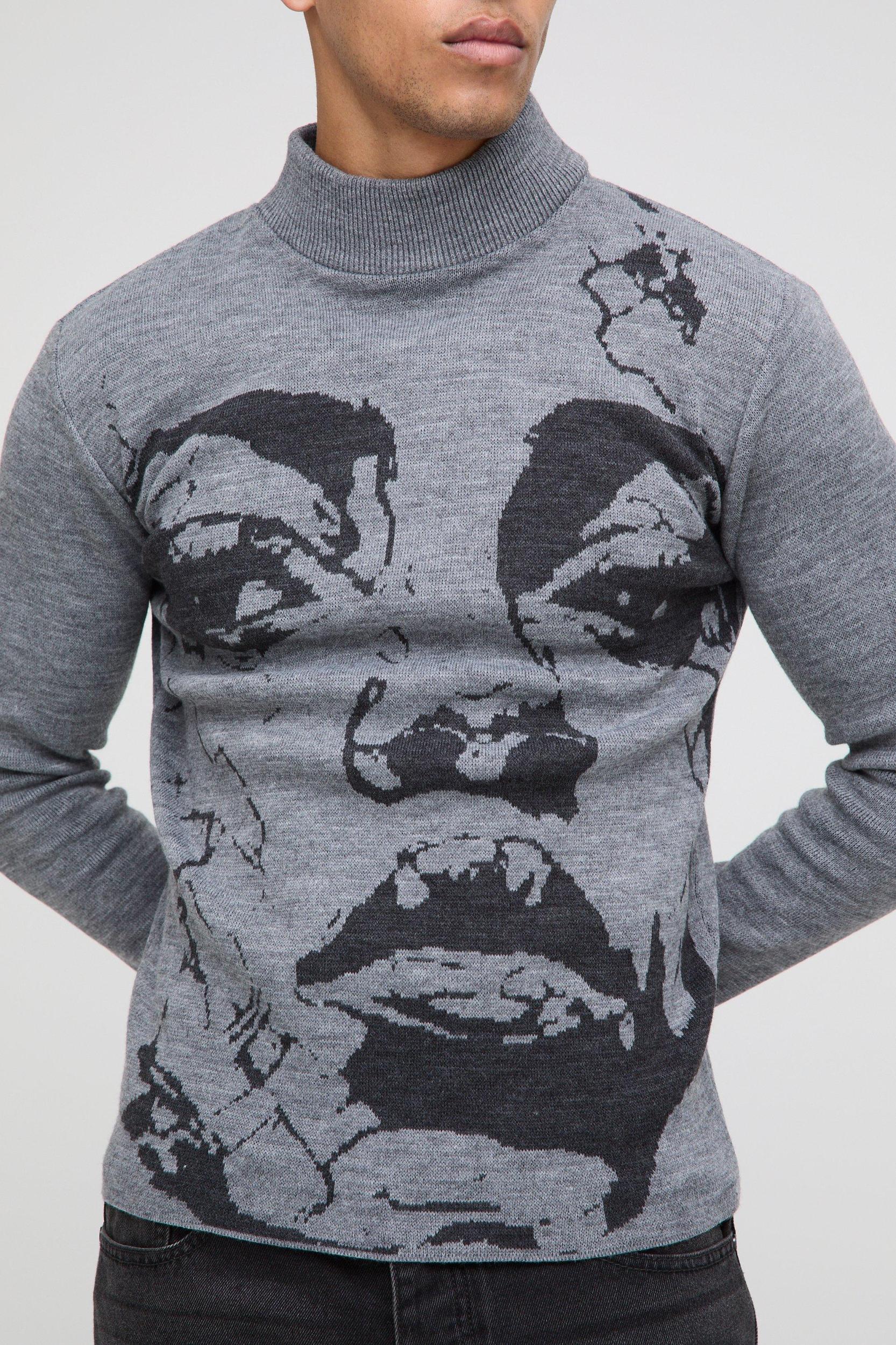 Muscle Fit Extended Neck Plated Face Graphic Knitted Sweater | boohooMAN USA