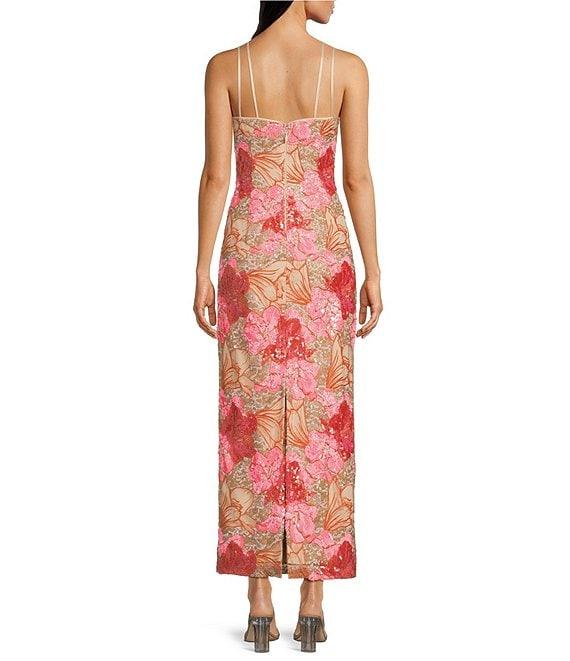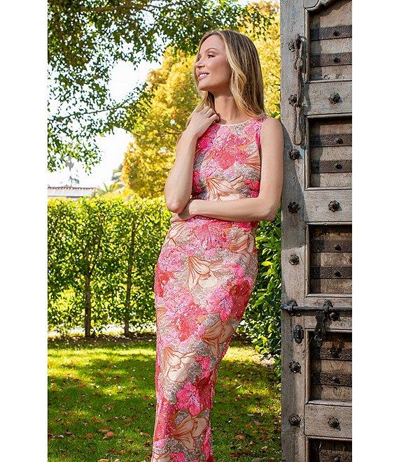 From Muse by Marchesa, this dress features, Novelty sequin fabrication Pencil silhouette Crew neckline Sleeveless Straight hemline Center back zip closure Approx. 54" in length Polyester Dry clean Imported.