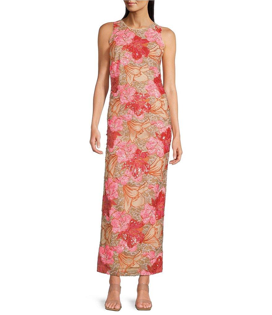Muse by Marchesa Canna Sequin Crew Neck Sleeveless Pencil Dress