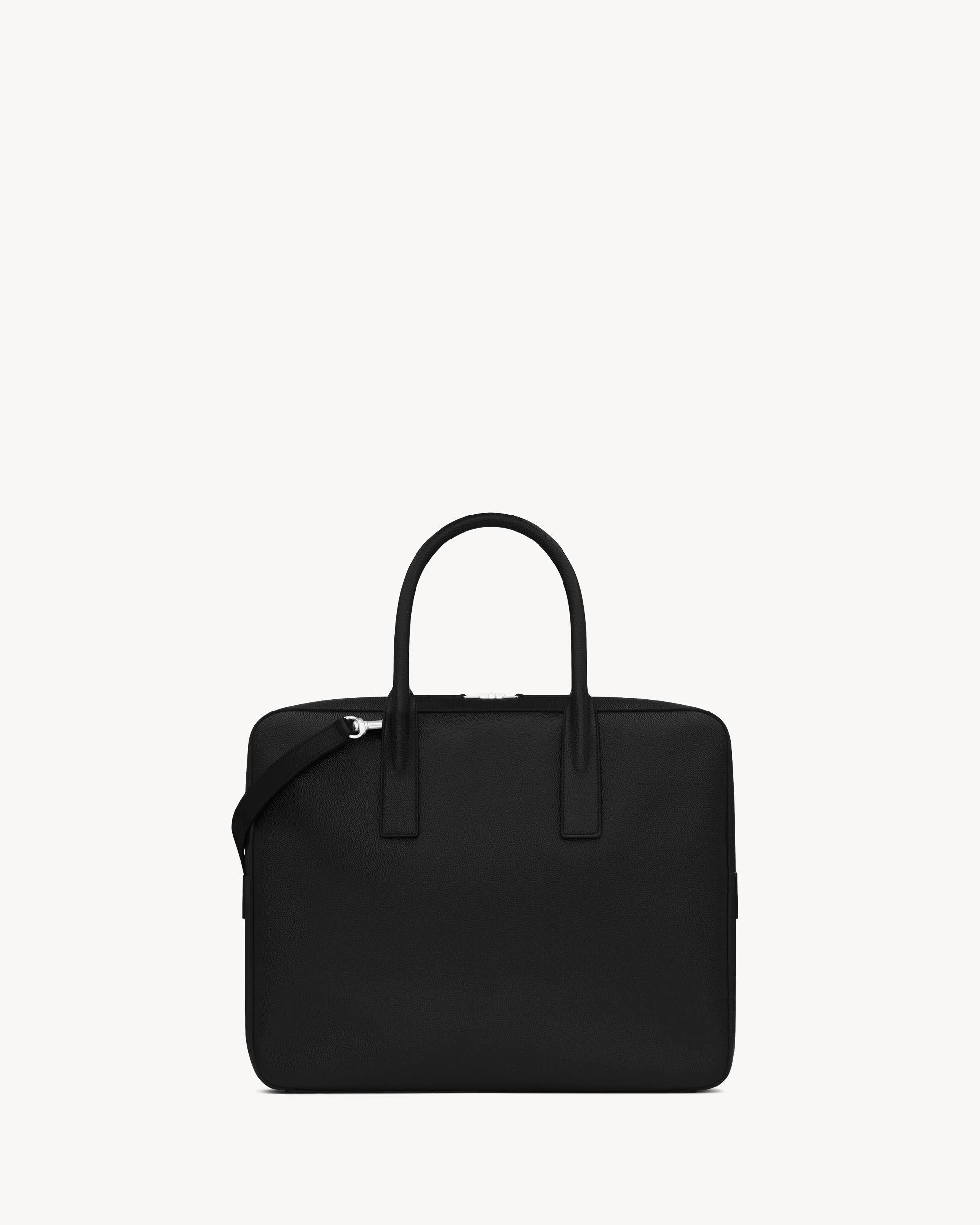 signature saint laurent small briefcase made with metal free tanned leather and certified cotton lining featuring tubular handles, padlock with leather encased keys and embossed saint laurent signature.