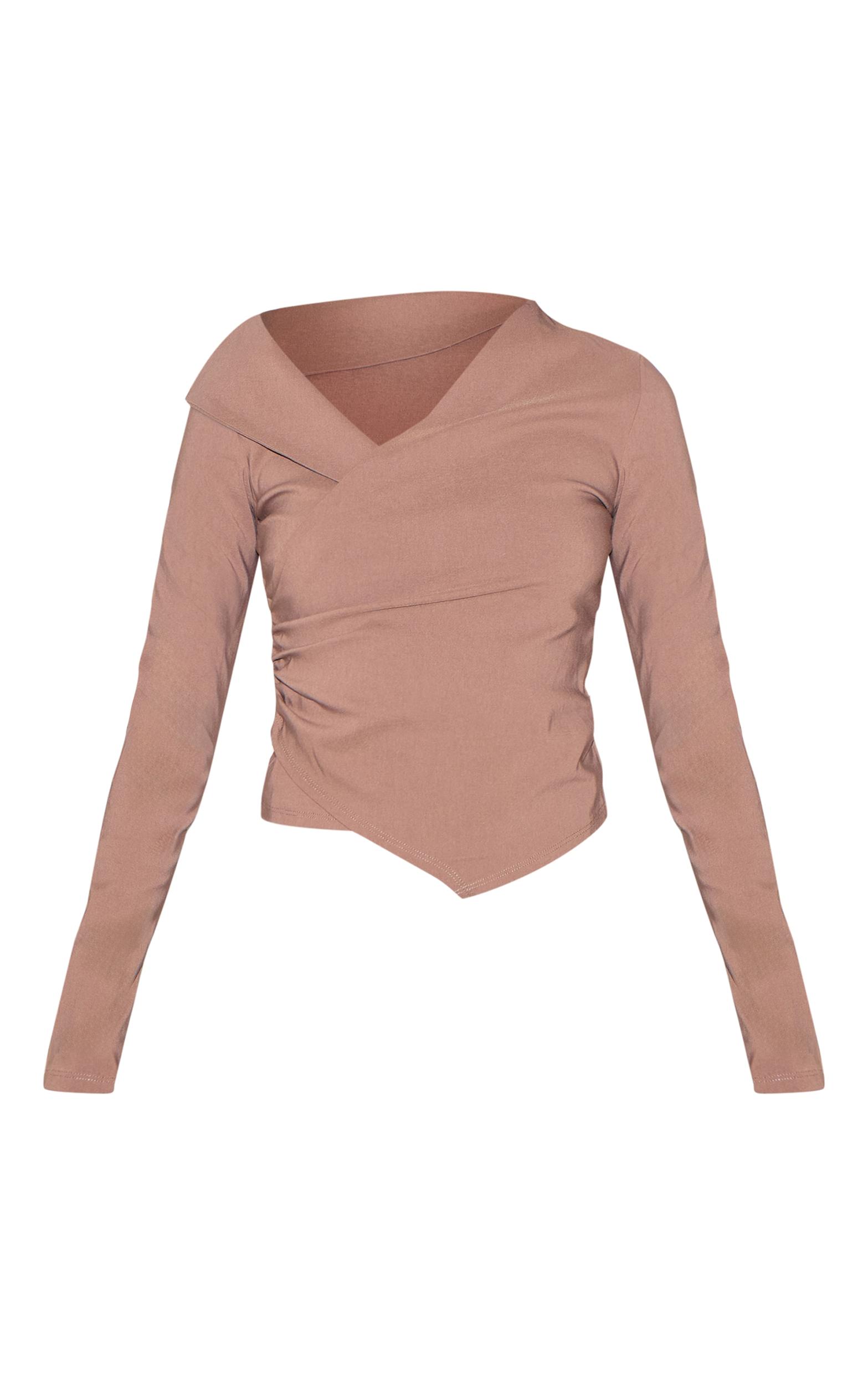 Be the best dressed in this mushroom bengaline asymmetric ruched long top. Brought to you in a mushroom bengaline material with an asymmetric design and a ruched detailing, this long top is all you need to feel chic. Team this top with a pair of heels and a mini skirt, it's a yes from us. Length approx 48cm/19inch (Based on a sample size UK 8) Model wears size UK 8/ EU 36/ AUS 8/ US 4Model Height - 5ft 8inchp]:!mb-0inch>Category: TopsProduct type: Bardot TopColor: MushroomMaterial: BengalineDesign: PlainNeckline: V NeckSleeves: LongOccasion: Day