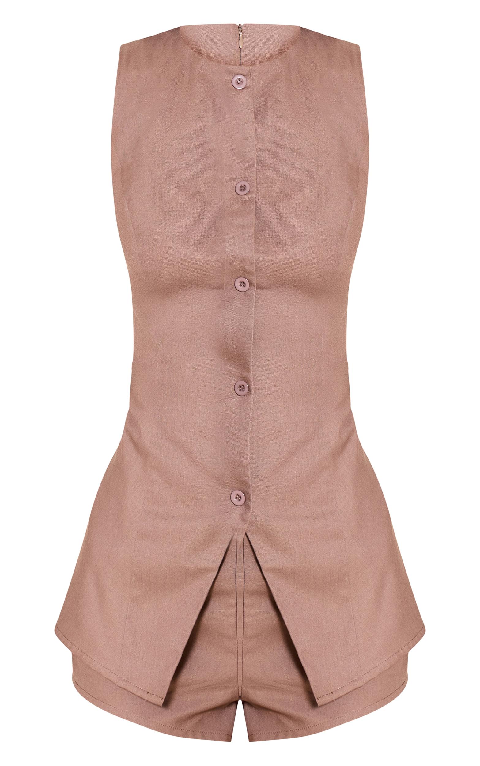Turn heads for all the right reasons in this mushroom tailored woven button down romper. Made from a mushroom material, this romper has button fastenings and a mini length fit. Wear it with slip on mule heels and gold stud fastening earrings for effortless chic.Length approx 81.5cm/32inch (Based on sample size US 4)Model wears size UK 8/ EU 36/ AUS 8/ US 4Model Height - 5ft 7inchp]:!mb-4inch>Brand: PrettyLittleThingCategory: DressesProduct type: Tailored PlaysuitColor: MushroomMaterial: Woven CrepeNeckline: ShirtSleeves: SleevelessOccasion: Evening