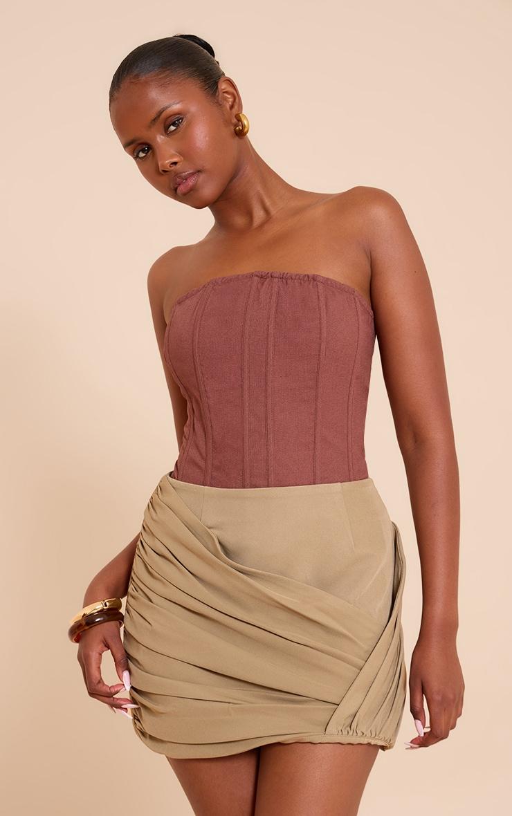 Take it to the next level in this mushroom woven wrap front ruched mini skirt. Crafted from mushroom hue material, this skirt has a detailed wrap front design, flattering ruching and a mini length fit. Pair it with a tonal corset, kitten heels and refined gold jewelry for an elevated finish.Length approx 33cm/13inch (Based on sample size US 4)Model wears size UK 8/ EU 36/ AUS 8/ US 4Model Height - 5ft 9inchp]:!mb-4inch>Brand: PrettyLittleThingCategory: BottomsProduct type: Mini SkirtColor: MushroomMaterial: Tailored WovenOccasion: Evening