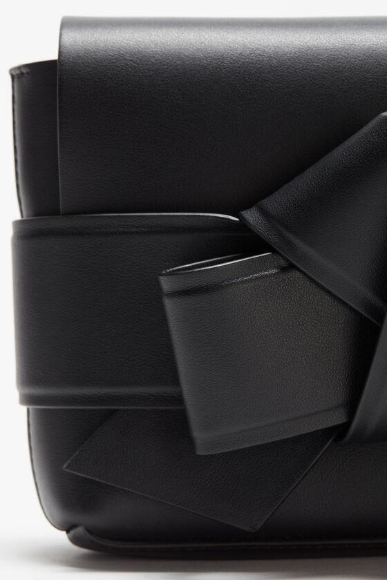 Mini crossbody bag is crafted from smooth leather adorned with a twisted musubi knot on the front, inspired by the traditional Japanese obi sashes. Complete with interior card slots and an adjustable crossbody strap. FN-UX-SLGS000253