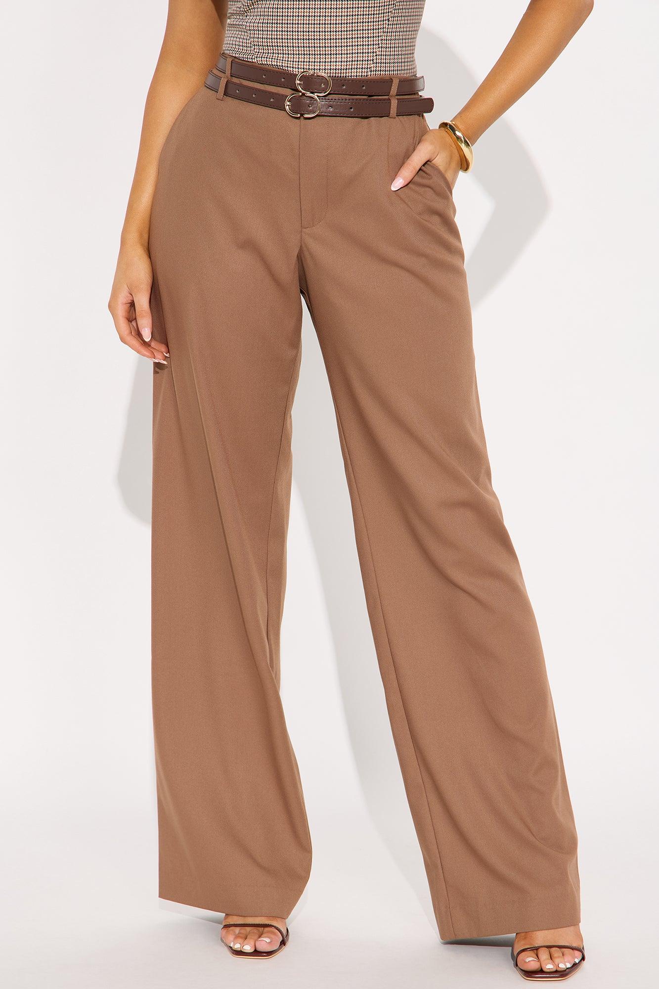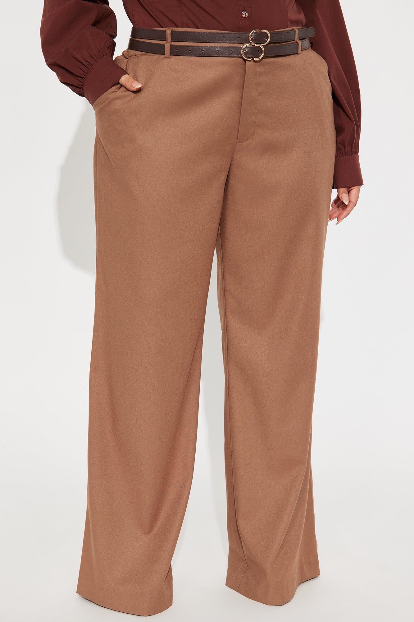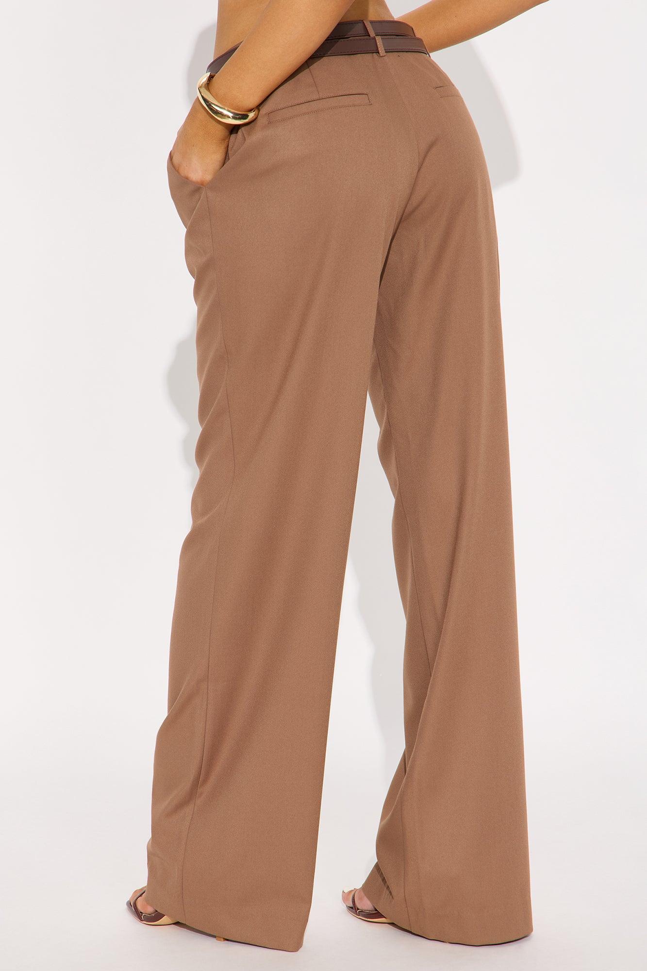 My New Obsession Belted Wide Leg Trouser Pant - Brown Female