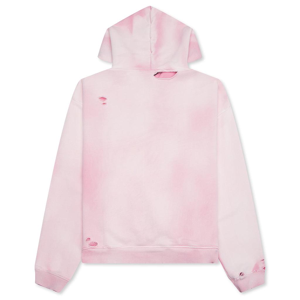 A bold statement piece from Paly Hollywood Clothing, the My Own Private Rodney Hooded Sweatshirt blends comfort with character. Crafted from heavyweight 510 GSM custom-knit French terry, this unisex hoodie features an oversized drop-shoulder fit for an effortlessly relaxed look. Treated with a heavy vintage wash, it showcases light "dirt" and sun-faded detailing, as well as hand distressing at the cuffs, hem, body, and hood for a truly worn-in feel. Embroidered and screen-printed artwork on the front elevates this hoodie to wearable art. 100% cotton Heavyweight 510 GSM custom-knit French terry Unisex oversized drop-shoulder fit Heavy vintage wash process Areas of hand distressing Embroidered and screen-printed details Style no: 4U005Q1008PNK