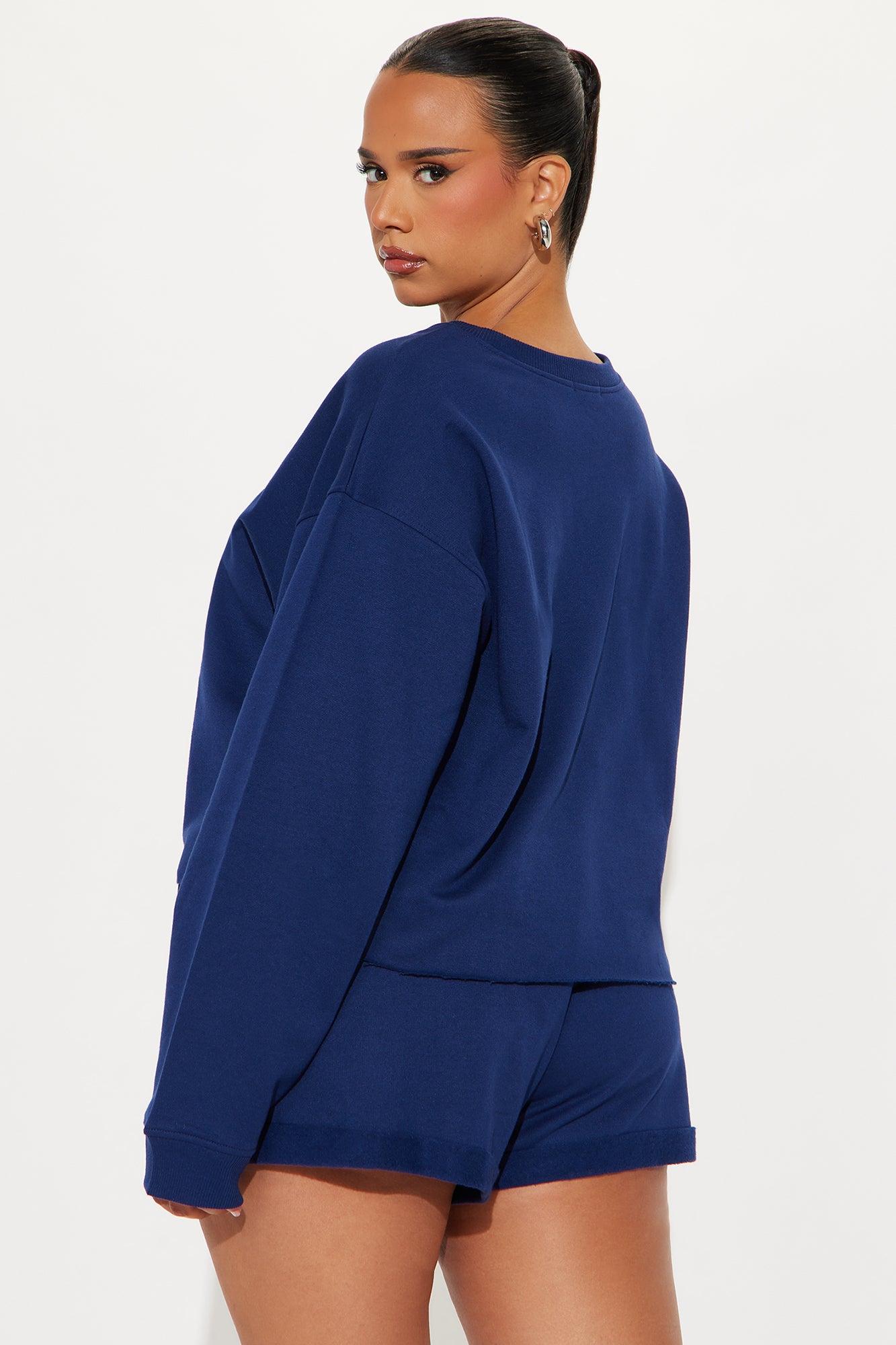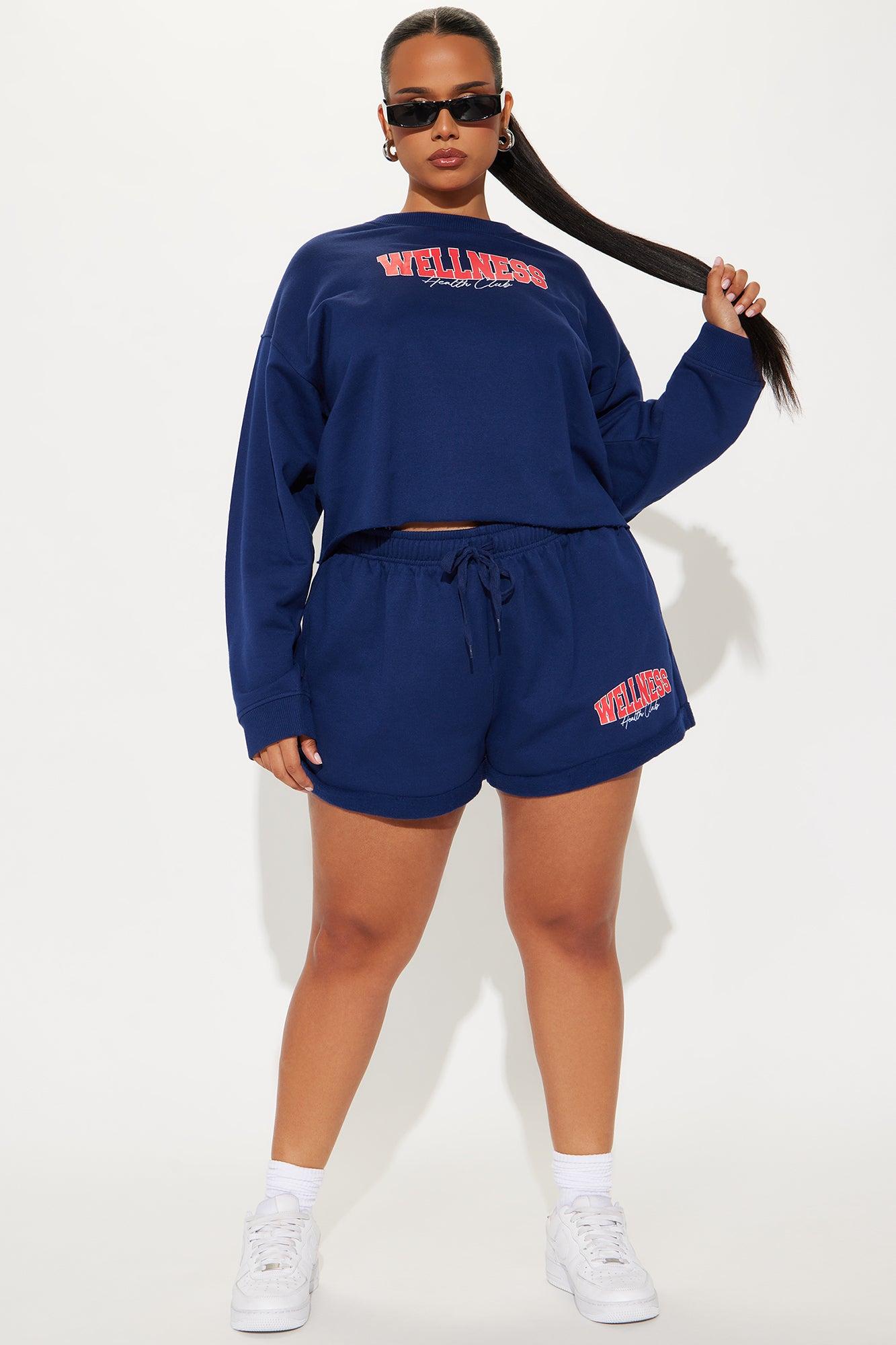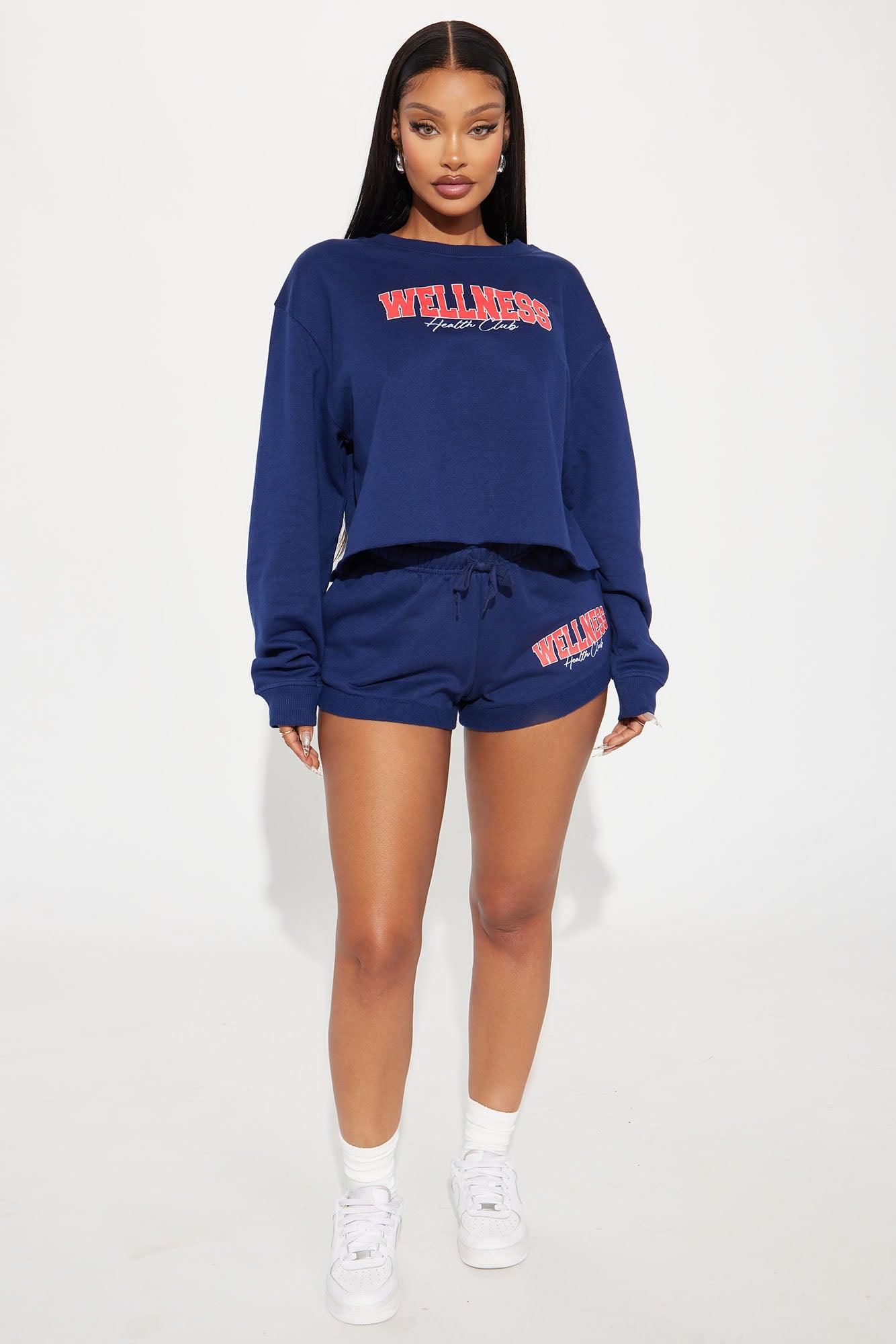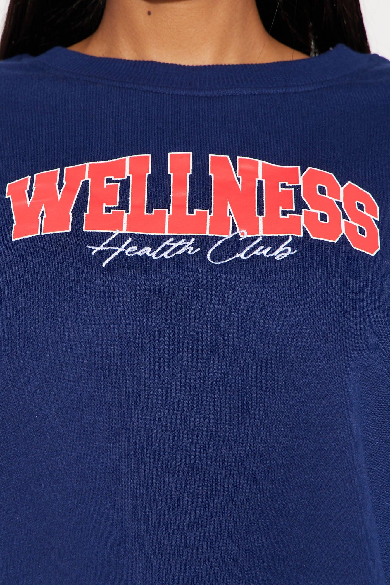 Available In Navy. Embroidered "Wellness Health Club" Verbiage Cropped Raw Hem Long Sleeve Crew Neck Paid Back To "My Wellness Era Shorts" Disclaimer: Due To The Printing Process A Difference In Saturation May Occur. Each Garment Is Unique. 60% Cotton 40% Polyester Imported