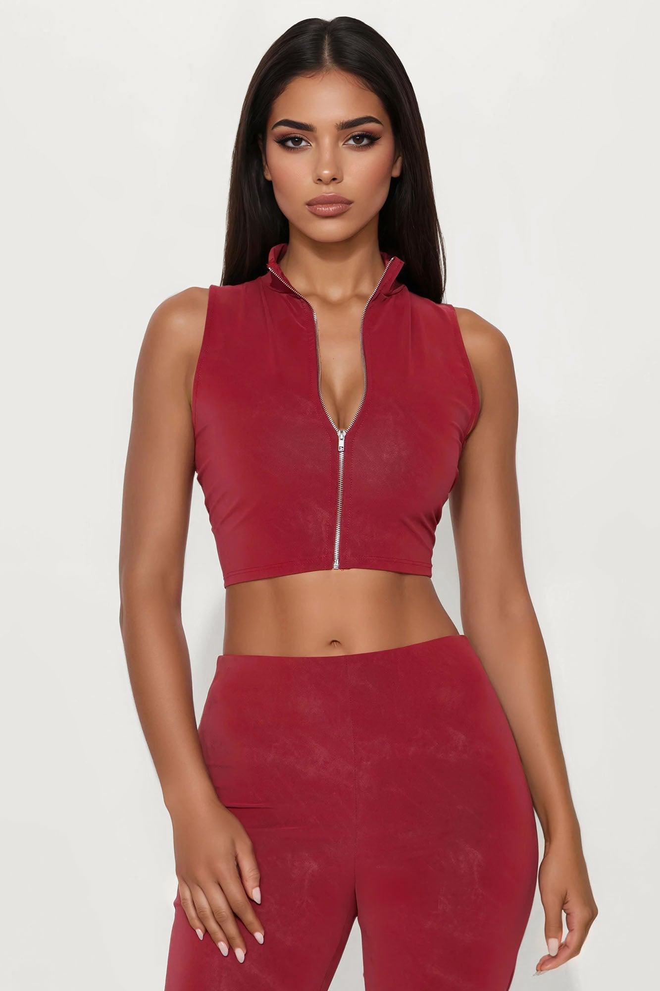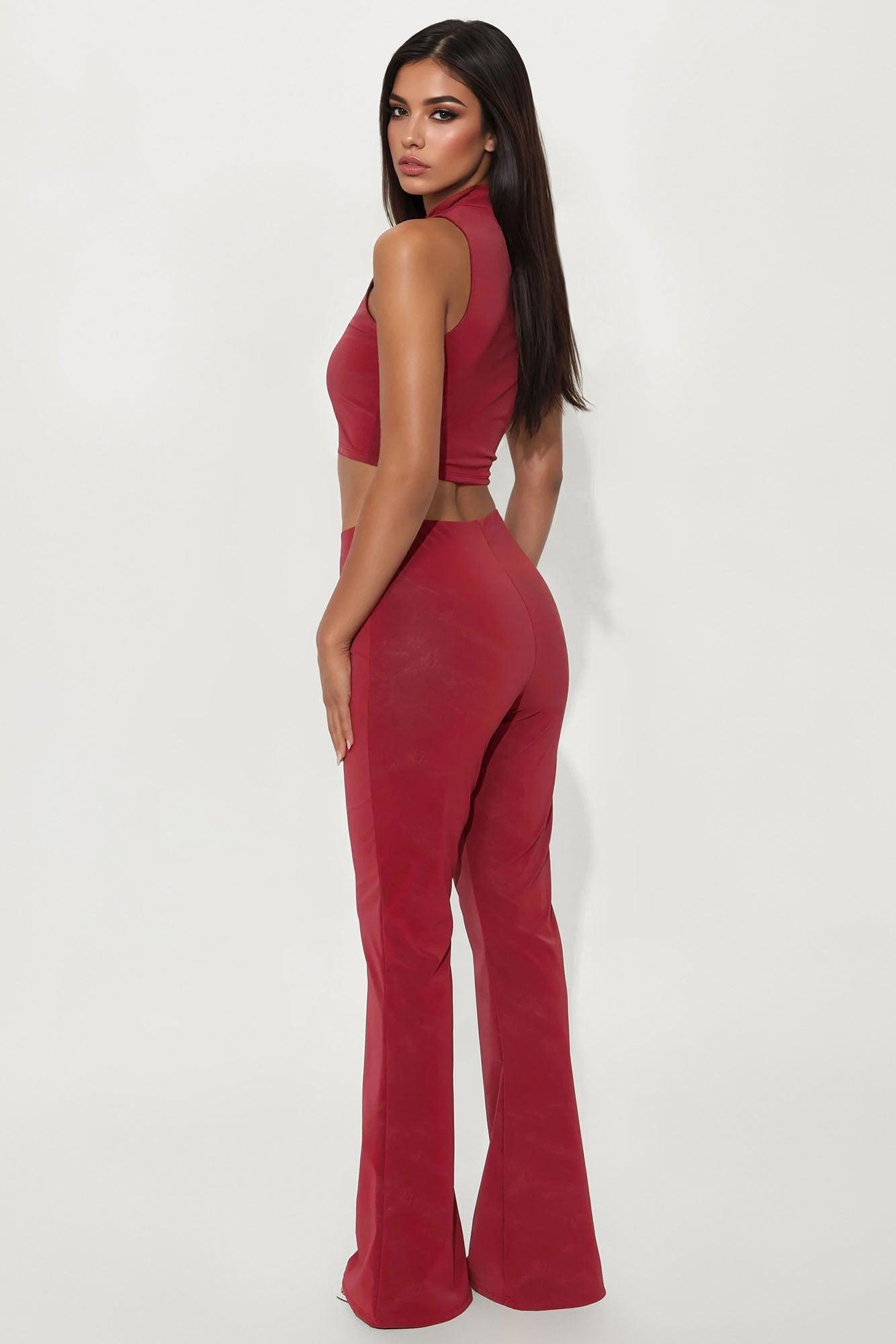 Mya Faux Leather Vest Flare Pant Set - Red Female