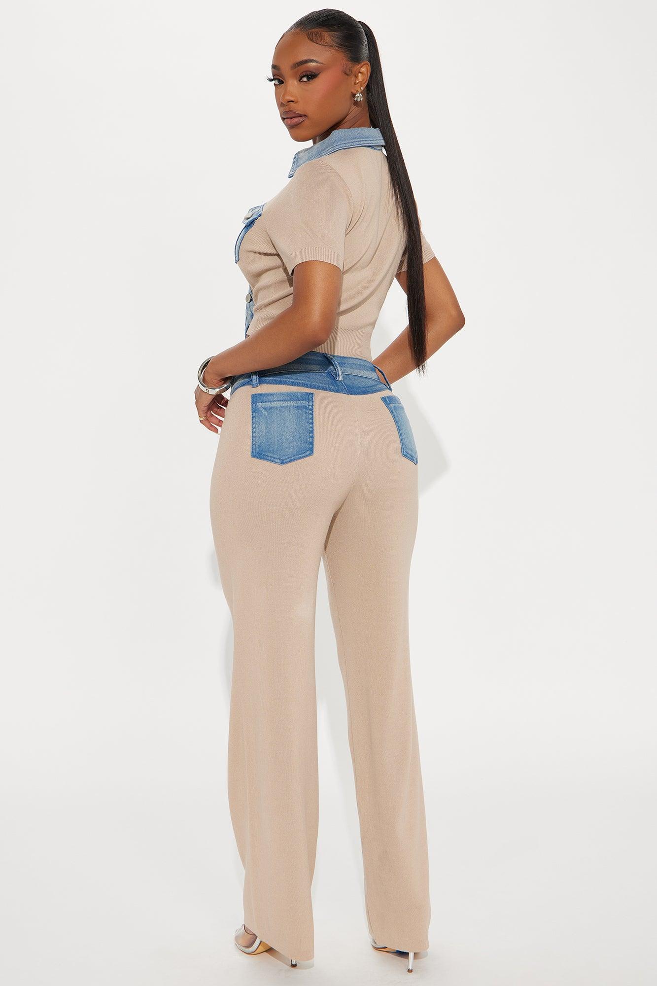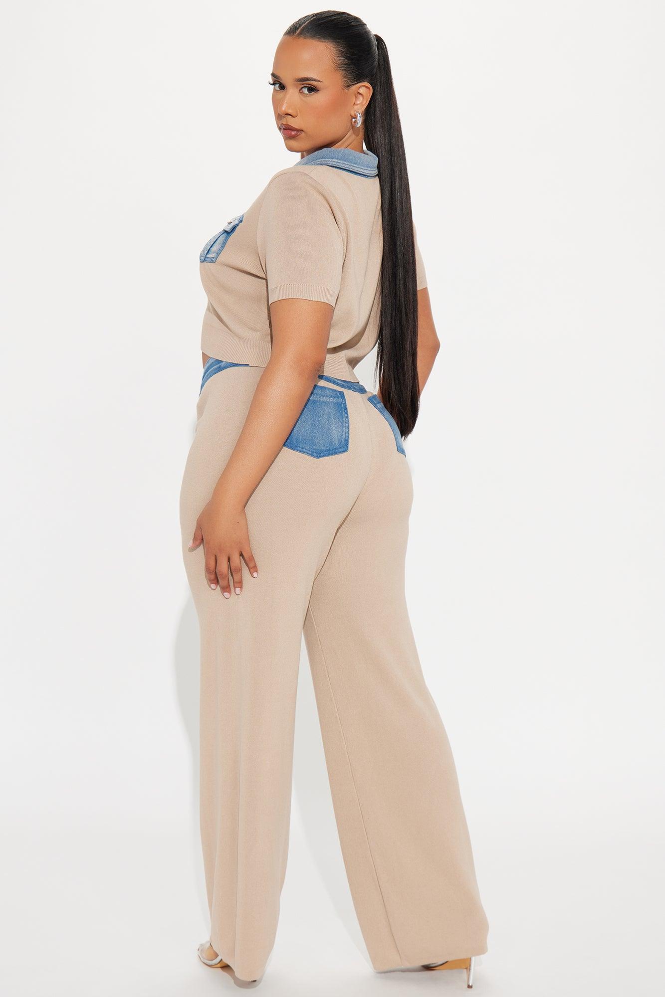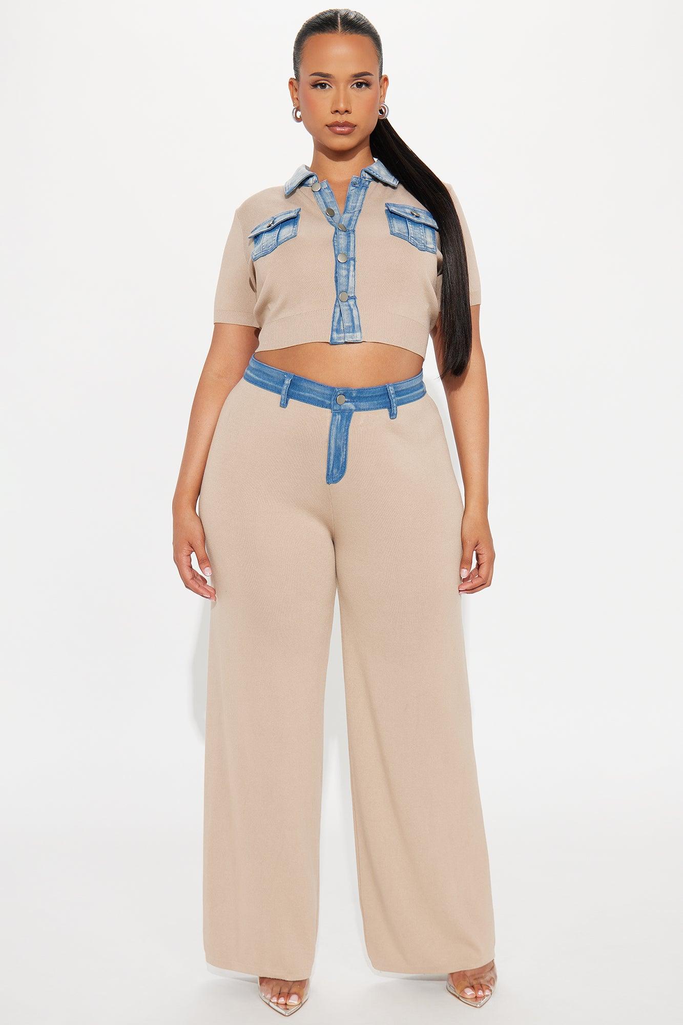 Available In Black And Taupe. Top And Pant Set Stretch Pockets Top Button Down Pant Zipper & Button Detail 33" Inseam Self: 72% Viscose 28% Polyester Contrast: 70% Cotton 28% Polyester 2% Spandex Imported California Proposition 65WARNING: Cancer and Reproductive Harm - www.P65Warnings.ca.gov.