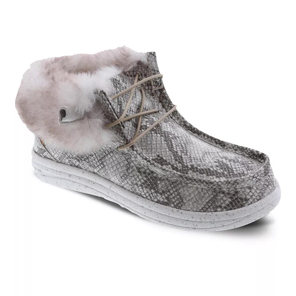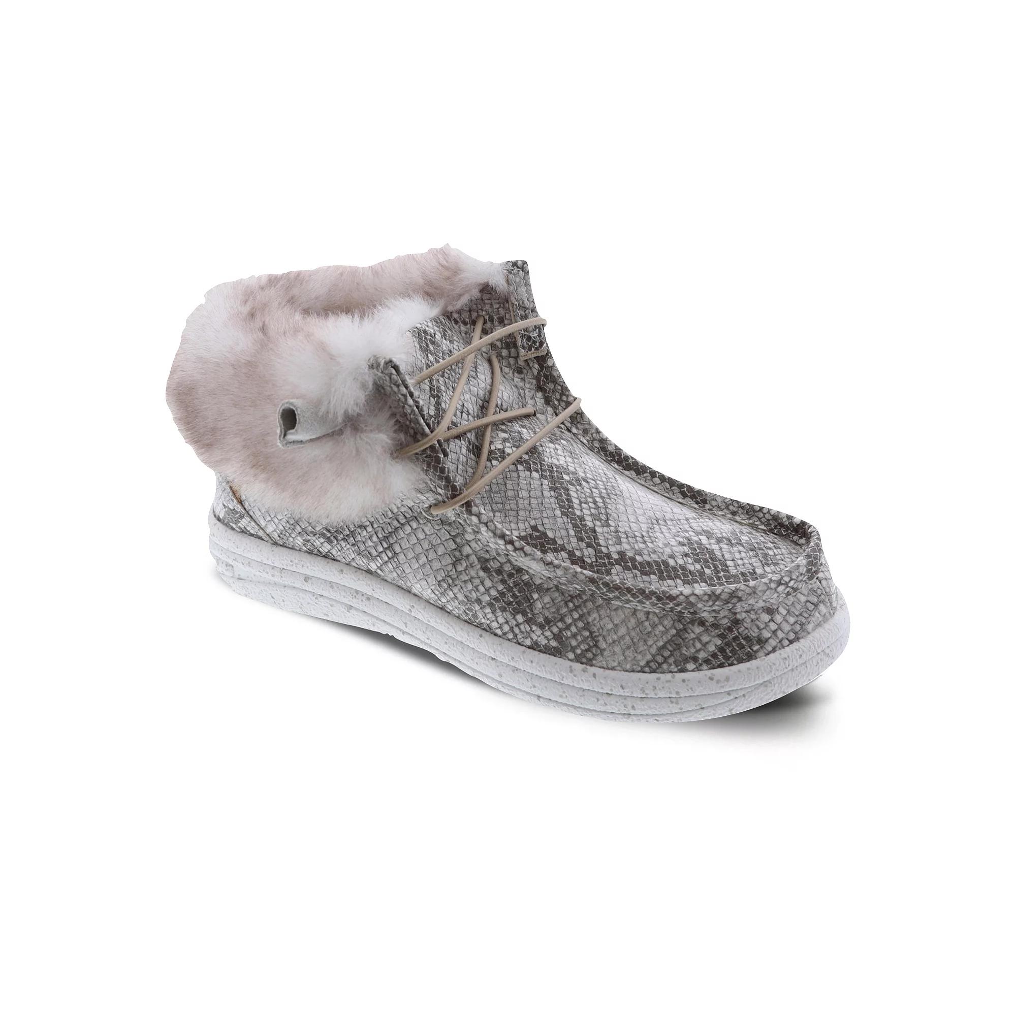 Experience cozy comfort with these Womens LAMO Sheepskin Cassidy snake print winter boots. Features rich suede upper along with a premium sheepskin lined footbed. This shoe will keep you comfy and stylish. Heel Height: 1 1/4Upper Material: PUOutsole Material: EVA