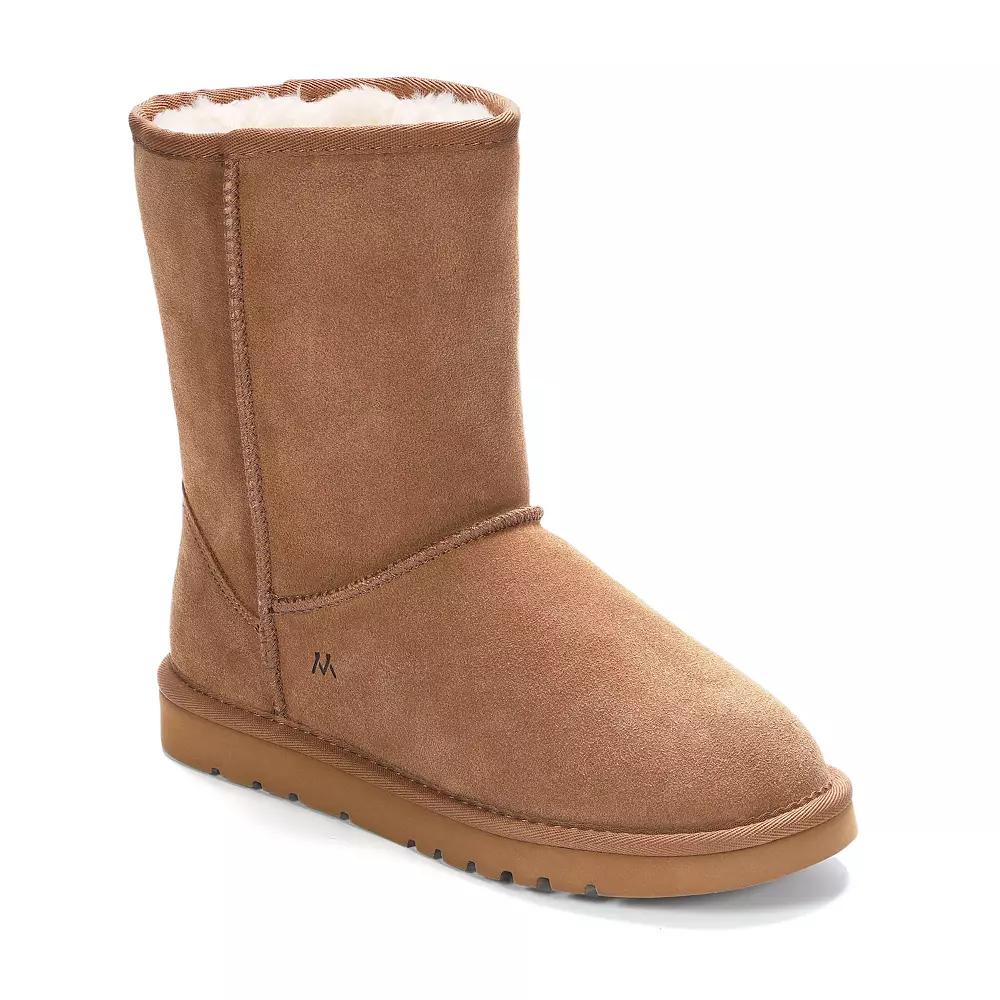 Simple, warm, and dependable, these boots are made for everyday wear. A cushioned sole and soft lining keep you comfortable through the season. Click this FOOTWEAR GUIDE to find the perfect fit and more! - https://www.kohls.com/feature/shoesizeguide.jsp. FEATURES: Premium Ortholite insole for enhanced comfort, HydroGuard water and stain repellent treatment for durability. DETAILS: Imported, Plain toe, Pull-on closure, 1 inch heel height, Treaded outsole, Removable insole, 1 inch platform height. FIT & SIZE: Mid-calf boot shaft, 15 inch circumference, 9 inch height. MATERIAL & CARE: Contains faux fur, Premium suede upper, Premium faux fur lining, Foam midsole, Rubber outsole, Spot clean care. Color: Chestnut. Gender: female. Age Group: adult.