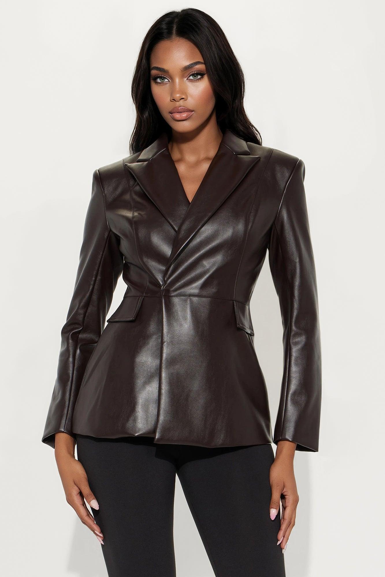 Myra Faux Leather Hourglass Blazer - Chocolate Female