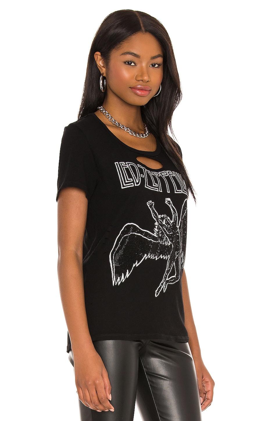 Lauren Moshi Myra Led Zeppelin Tee in Black. - size S (also in M, XL) Lauren Moshi Myra Led Zeppelin Tee in Black. - size S (also in M, XL) LED ZEPPELIN. 100% cotton. Front screen print graphic with crystal embellishments. Intentionally destroyed areas. Made in USA. LMOS-WS1597. 2284-VCTH-14037. Lauren Moshi was founded by siblings Michael and Lauren. Within the creations lies a treasure trove of unique pieces carefully constructed and artfully deconstructed.