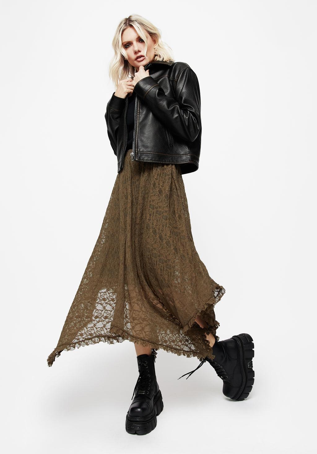 Myrtle Floral Lace Handkerchief Hem Midi Skirt