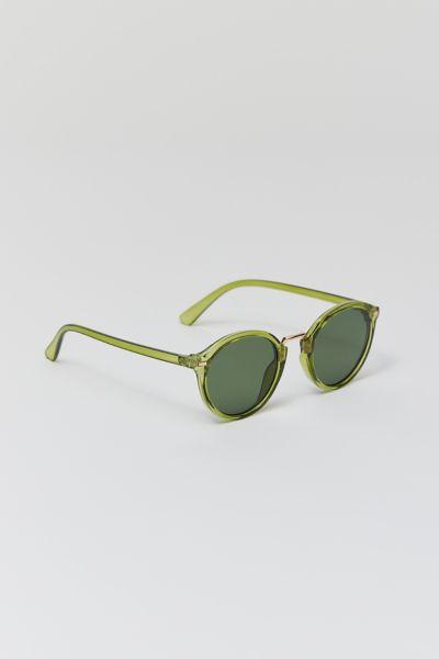 Round silhouette sunglasses with a plastic frame. Features a metal nose piece and temple accents. Fitted with tinted UV-blocking lenses. Features Plastic frame sunglasses Metal accents Tinted UV-blocking lenses Content + Care Polycarbonate, metal Wipe clean Imported Size Bridge: 20mm Width: 50mm Height: 46mm Myrtle Round Sunglasses in Black, Mens at Urban Outfitters