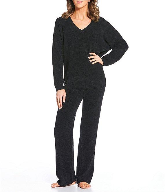 N by Natori Aura Solid Long Sleeve V-Neck Coordinating Knit Lounge Top