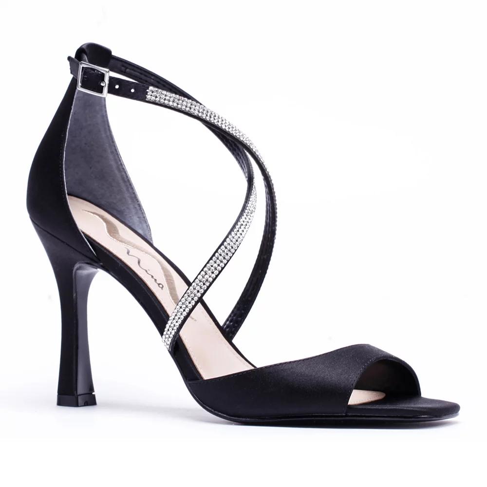N by Nina Dorean Women's Sandal Bring the glamour with you in the Dorean women's Sandal from N by Nina. With a glitter upper featuring sparkly crisscross straps, this ankle buckle strap Shoe also has a square toe for sophisticated style. The lightly Padded footbed soothes your foot while you walk steady on the 3 1/2" heel. Glitter upper Ankle buckle strap Square toe Lightly Padded footbed 3 1/2" heel