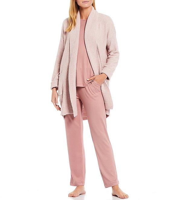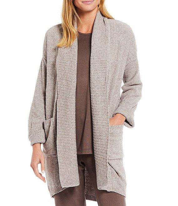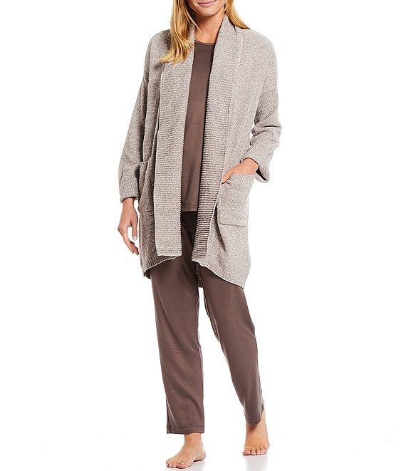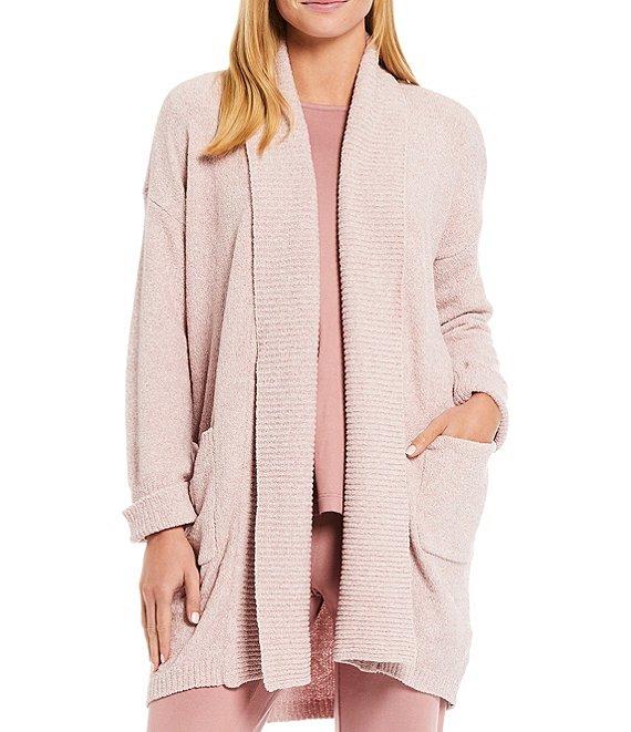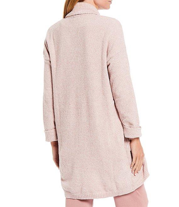 From N Natori, this cardigan features: Super cozy chenille fabrication open neckline Long sleeves Two front patch pockets Ribbed trim detail High low hem Open front; no closure Approx. 31" length Polyester/nylon Machine wash/tumble dry low Imported.