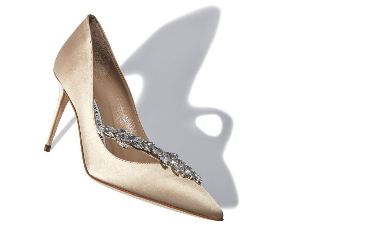 NADIRA Champagne Satin Jewel Buckle Pumps