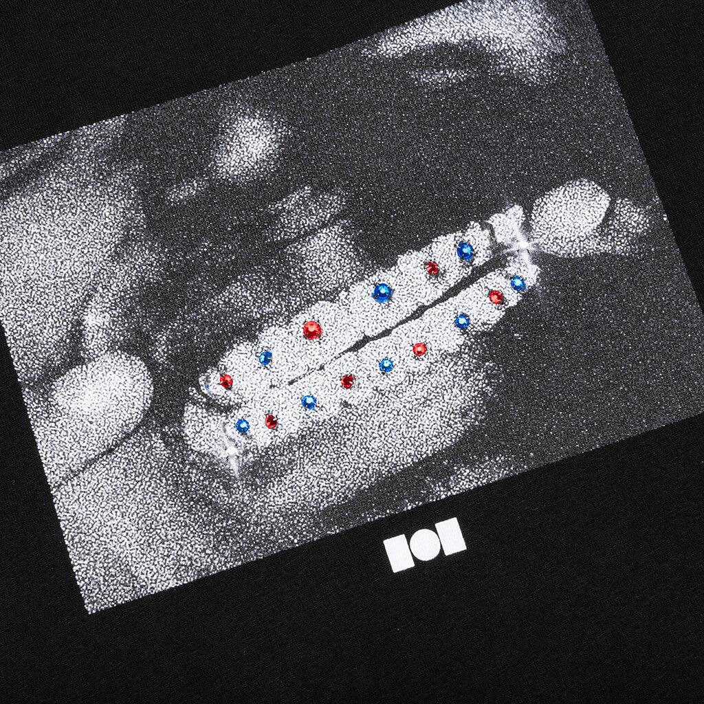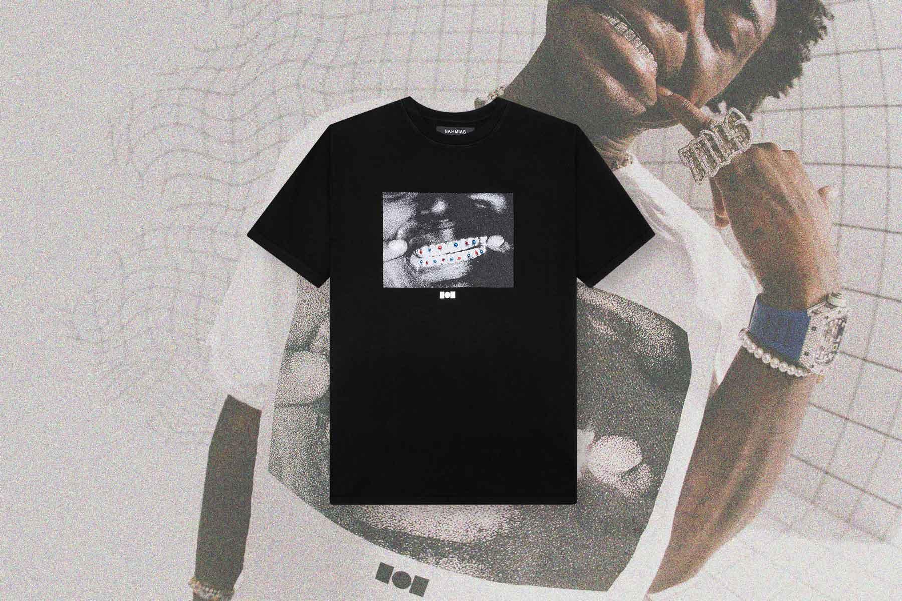 Luxury menswear brand Nahmias joins rapper Kodak Black to introduce the Crystal Grillz T-shirt. The Autumn/Winter '23 collection is an ode to 90s fashion and hip-hop, which takes inspiration from oversized silhouettes, patchwork designs + bold graphics. The Crystal Grillz T-shirt features a crew neckline and a high-quality screen-printed design. DUE TO THE LIMITED NATURE OF THIS PRODUCT, ALL SALES ARE FINAL. THIS ITEM IS NOT ELIGIBLE FOR DISCOUNTS OR SPECIAL PROMOTIONS. 100% Cotton Crew neckline Ribbed collar Straight hem Screen-printed design Style No: AW23-JSY1-T9G51CR1-001