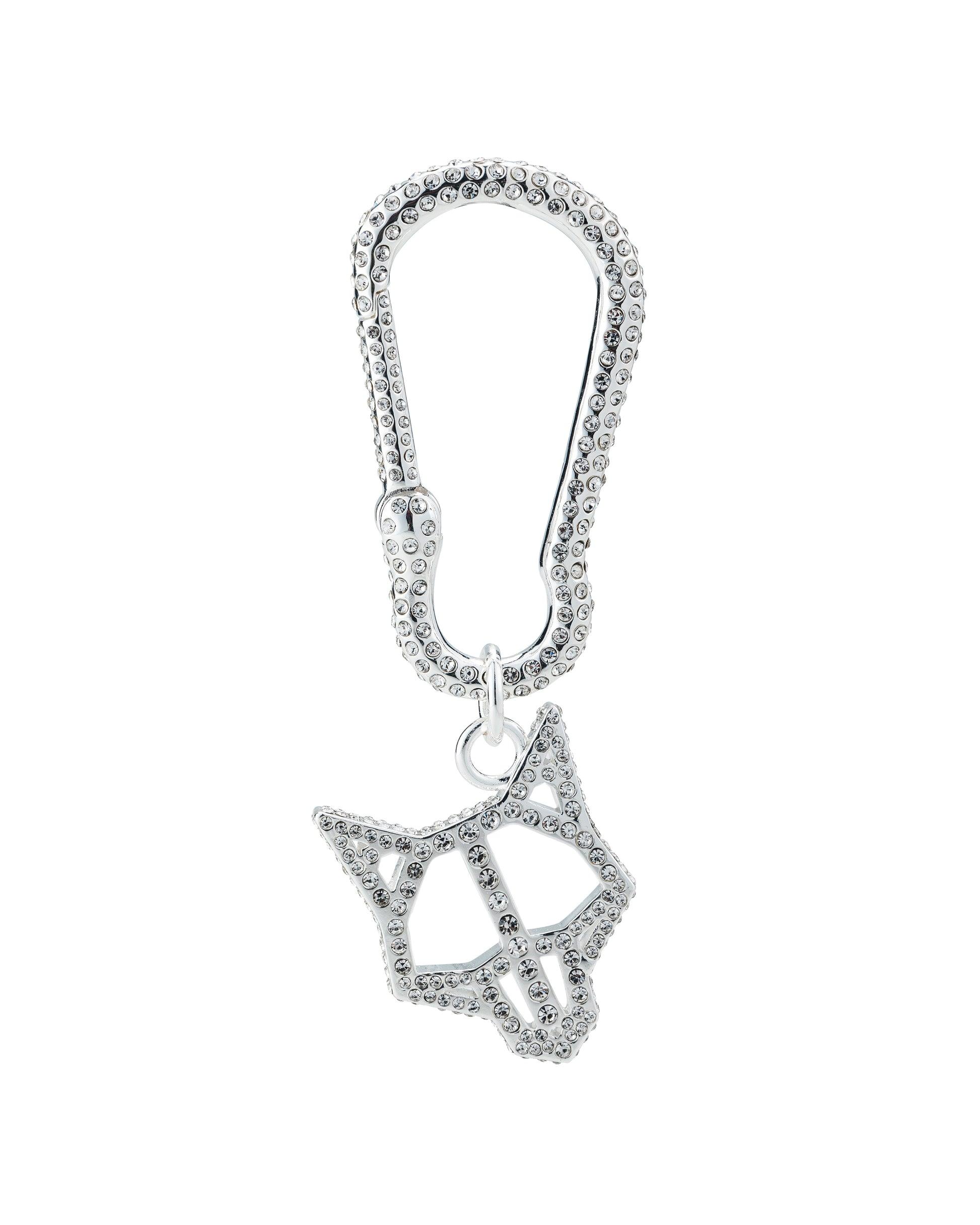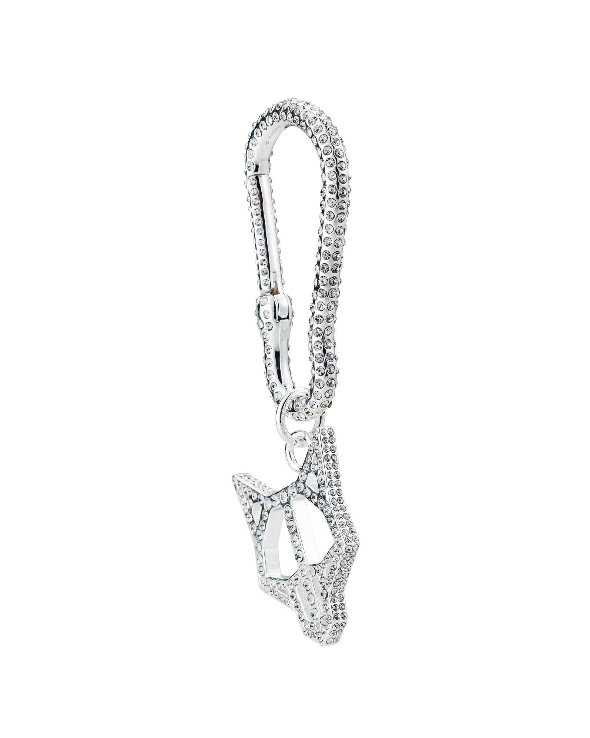 Crafted from sterling silver-plated brass with glass set diamonds, which can also be used as key ring, bag charm or used along side any accessory.