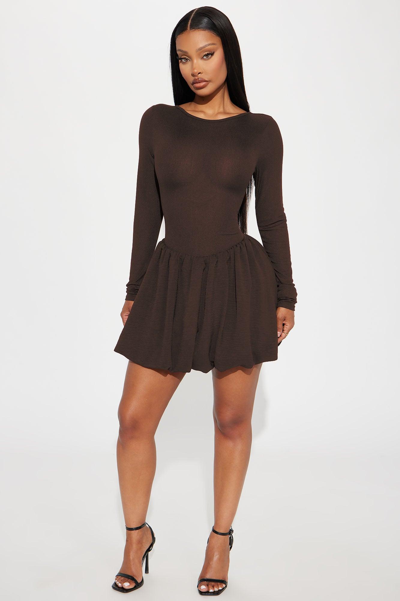 Nala Long Sleeve Bubble Mini Dress - Mocha