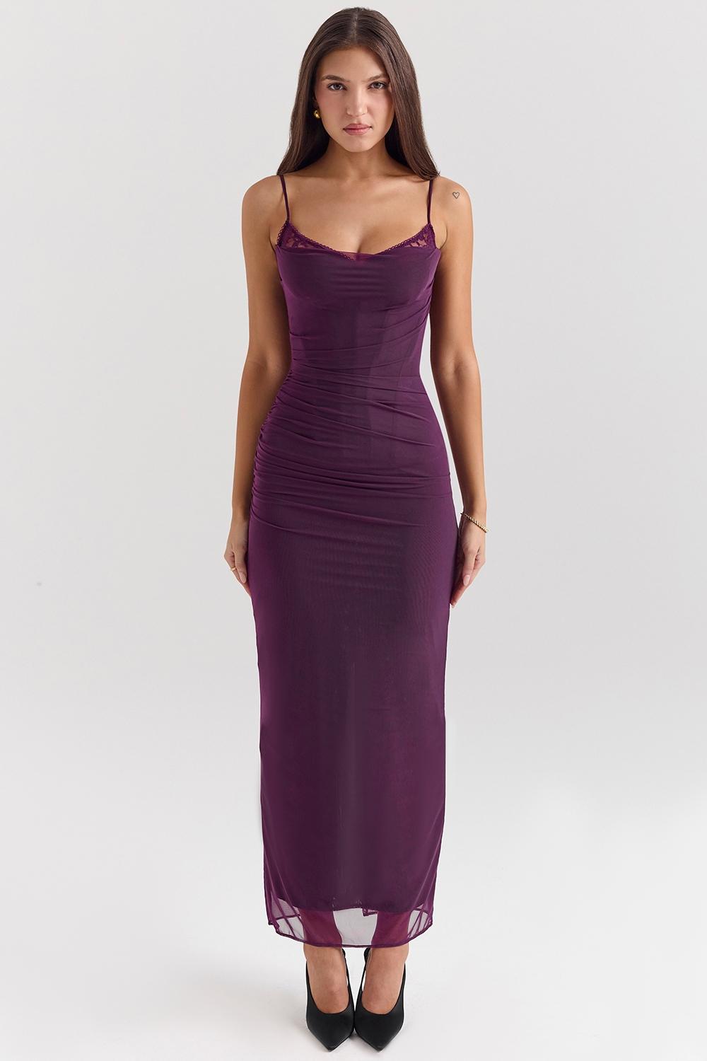 The 'Nalini' Dress in Grape by House of CB is a real show-stopper, designed to make you feel like pure magic! This stunning mesh creation is lined with our "power mesh" – think shapewear with superpowers – that hugs and smooths like a dream. The corset-style top brings the drama, sculpting your curves to perfection, while the adjustable straps let you find that just-right fit. And with a back vent that says, "I’m here to move," 'Nalini' flows with you, not against you. Drenched in a rich, juicy grape hue, this dress serves up elegance, ready to turn heads the moment you step in.