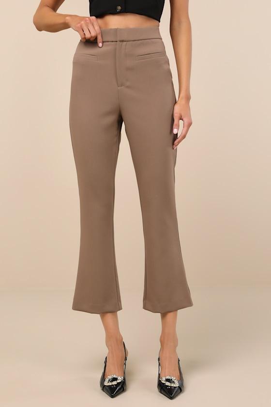 A chic lifestyle isn't complete without these sleek woven trouser pants that feature a high-rise fit with a hidden top clasp closure and zip-fly. Front welt pockets accent the slim pant legs that finish with flared, cropped hems for a '90s-chic finish. Darted details at back for a tailored touch.