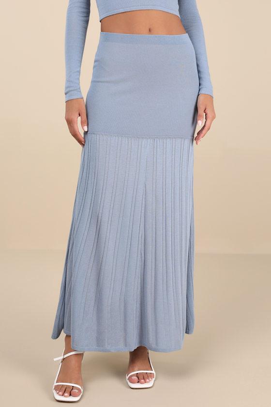 Effortlessly call in compliments like the goddess you are with this graceful maxi skirt, crafted from stretch-knit for the most comfortable wear. The banded waist can be styled as high or low-rise, fitting your figure perfectly as it meets a ribbed texture that creates a flowy, A-line silhouette and completes the ankle-grazing design. Pair with the matching top for a complete look!