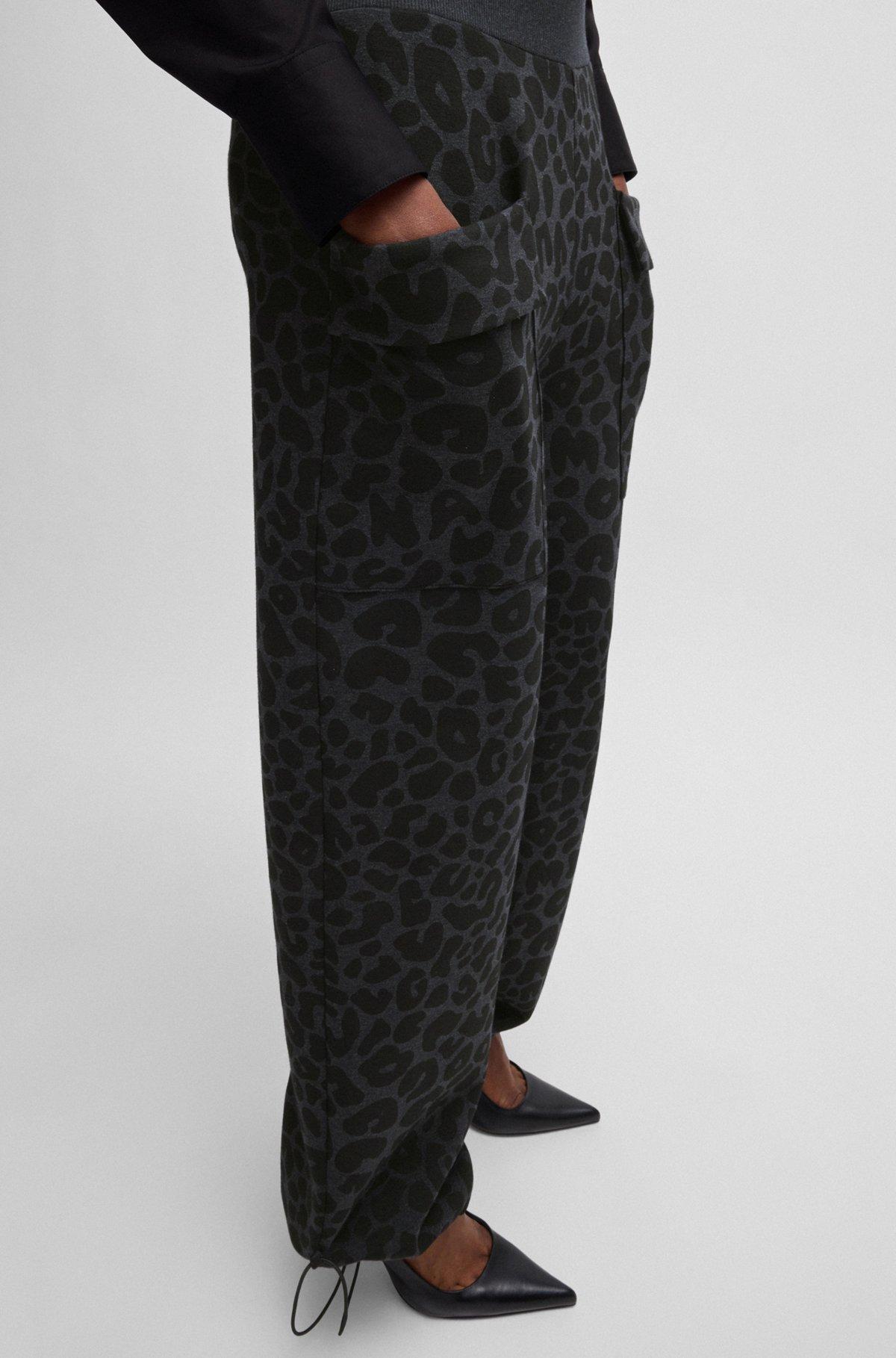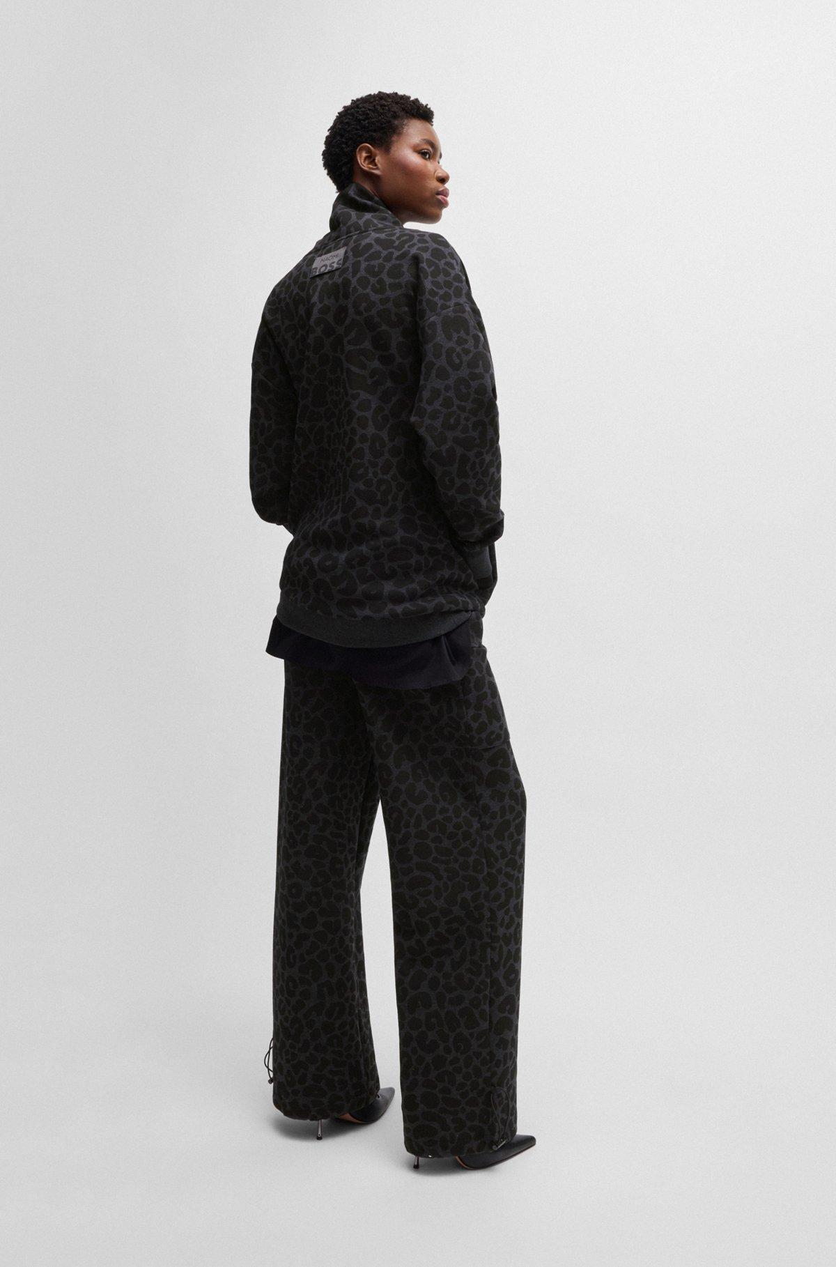 Printed adjustable-hem tracksuit bottoms by NAOMI x BOSS. A relaxed-fit style featuring anti-stress energear™ technology, which returns the body’s own energy, emitted in the form of far infrared rays. The energy harnessed in this way can have a positive effect and provide a feeling of calm. Part of an exclusive capsule, co-created with Naomi Campbell, designed with elegance, confidence, and on-the-go ease in mind.